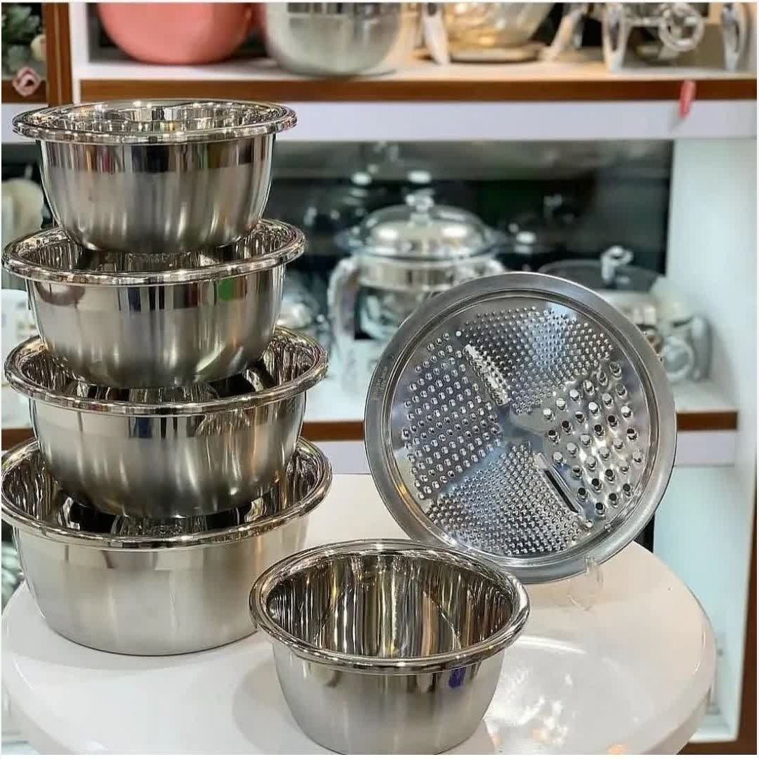 *سرویس لگن 6 تکه رنده دار استیل برند یونیک مکث* ابعاد: 20-22-24-26-28 سایر توضیحات: ✅ سرویس لگن رنده دار یونیک ❇️ 6 پارچه ، 5 عدد لگن ، 1 عدد رنده ✅ جنس استیل درجه یک ❇️ سایزبندی 20.22.24.26.28 ✅ حک شده Unique ❇️ پرکاربرد و با کیفیت مناسب برای: میوه - سالاد - سبزی جنس: استیل نگیر لگن 6 تکه رنده دار یونیک مکس این محصول شامل 5 عدد کاسه استیل بزرگ است. از این کاسه ها میتوانید برای کار های مختلفی از جمله شستشو و نگهداری مواد غذایی استفاده کنید. یک رنده گرد 4 حالته همراه با این لگن ها عرضه میشود. این رنده روی یکی از این لگن ها قرار میگیرد و میتوانید به سادگی مواد غذایی را بدون اینکه بیرون بریزد رنده کنید. این رنده شامل تیغه های رشته کن ریز و درشت و ورقه کن معمولی و شیار دار است. حفره ی وسط رنده برای راحتی در برداشتن آن از روی لگن ایجاد شده.