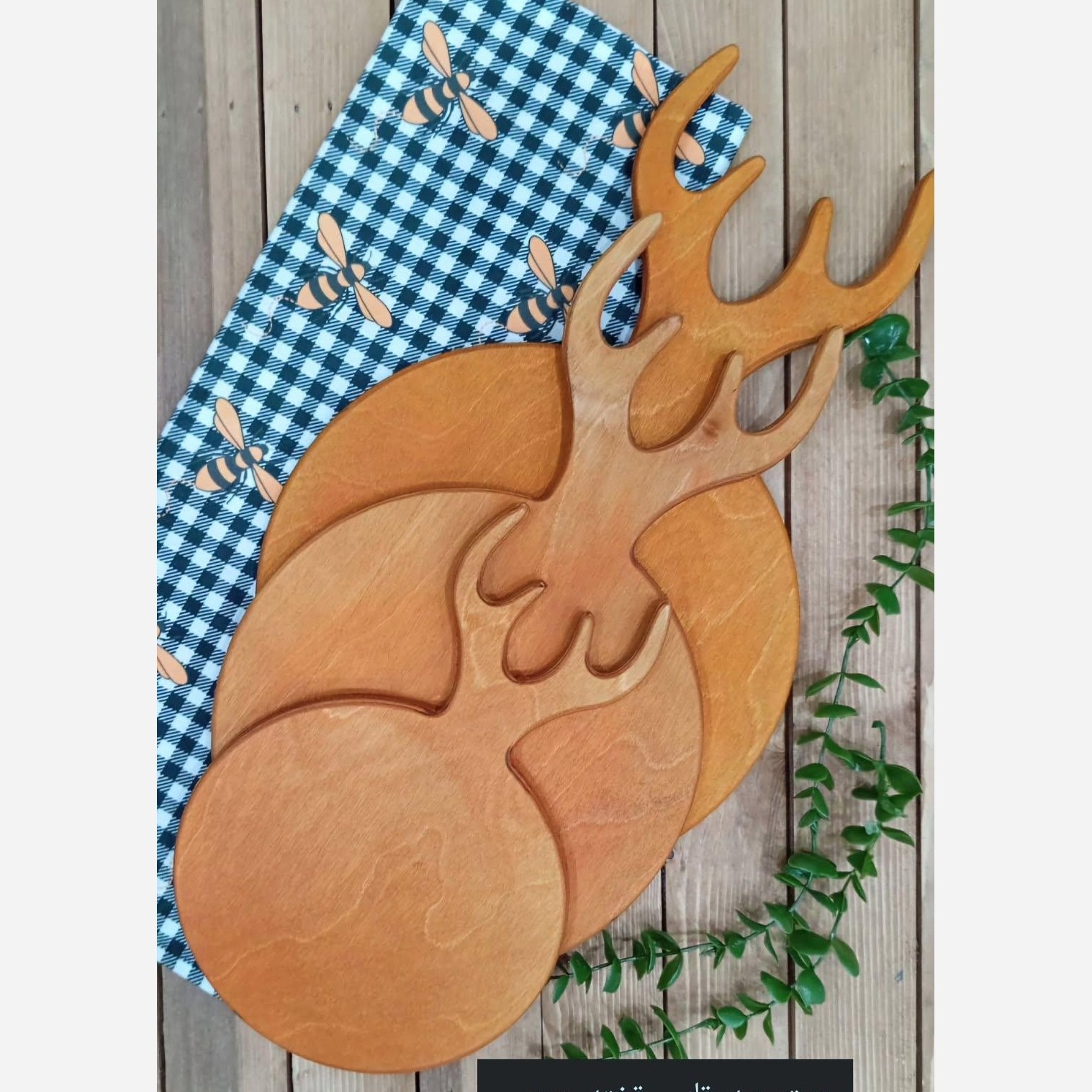 تخته سرو سه تایی چوبی طرح گوزنی مدل گرد قابل شستشو با آب