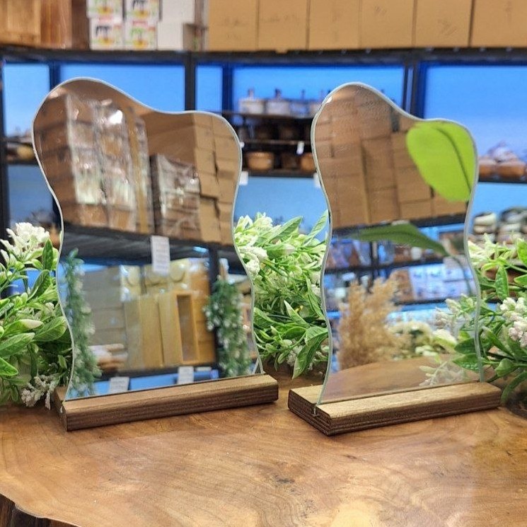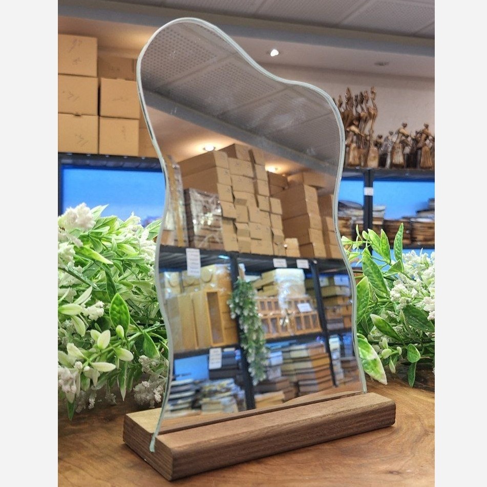 آینه دفرمه اقتصادی یک آینه دکوراتیو با طراحی دفرمه و مدرن، ساخته شده از چوب پلایوود و شیشه آینه با کیفیت بالا. مناسب برای نصب روی دیوار یا قرار دادن روی میز، این آینه جلوهای جذاب و متفاوت به دکوراسیون منزل یا محل کار شما میبخشد. 🔹 ابعاد: طول 16.5 سانتیمتر / عرض 5.5 سانتیمتر / ارتفاع 23.5 سانتیمتر 🔹 مناسب برای منزل، دفتر کار و هدیه