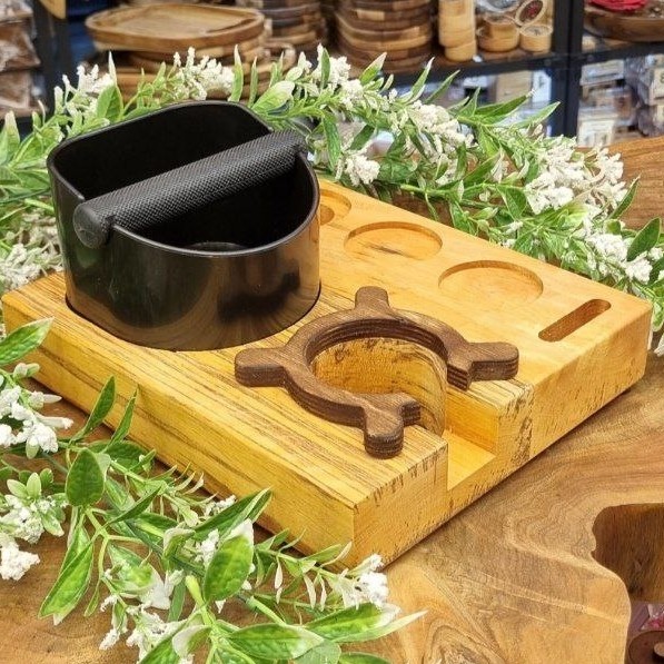 استند اسپرسو سطلدار یک استند کاربردی و شیک برای سرو اسپرسو و نگهداری وسایل مرتبط، ساخته شده از چوب توسکا و راش با کیفیت بالا. طراحی منظم و سطلدار این استند، استفاده آسان و جلوهای مدرن و طبیعی به میز شما میبخشد. 🔹 ابعاد: طول 25 سانتیمتر / عرض 21.5 سانتیمتر / ارتفاع 13 سانتیمتر 🔹 مناسب برای منزل، کافیشاپ و هدیه