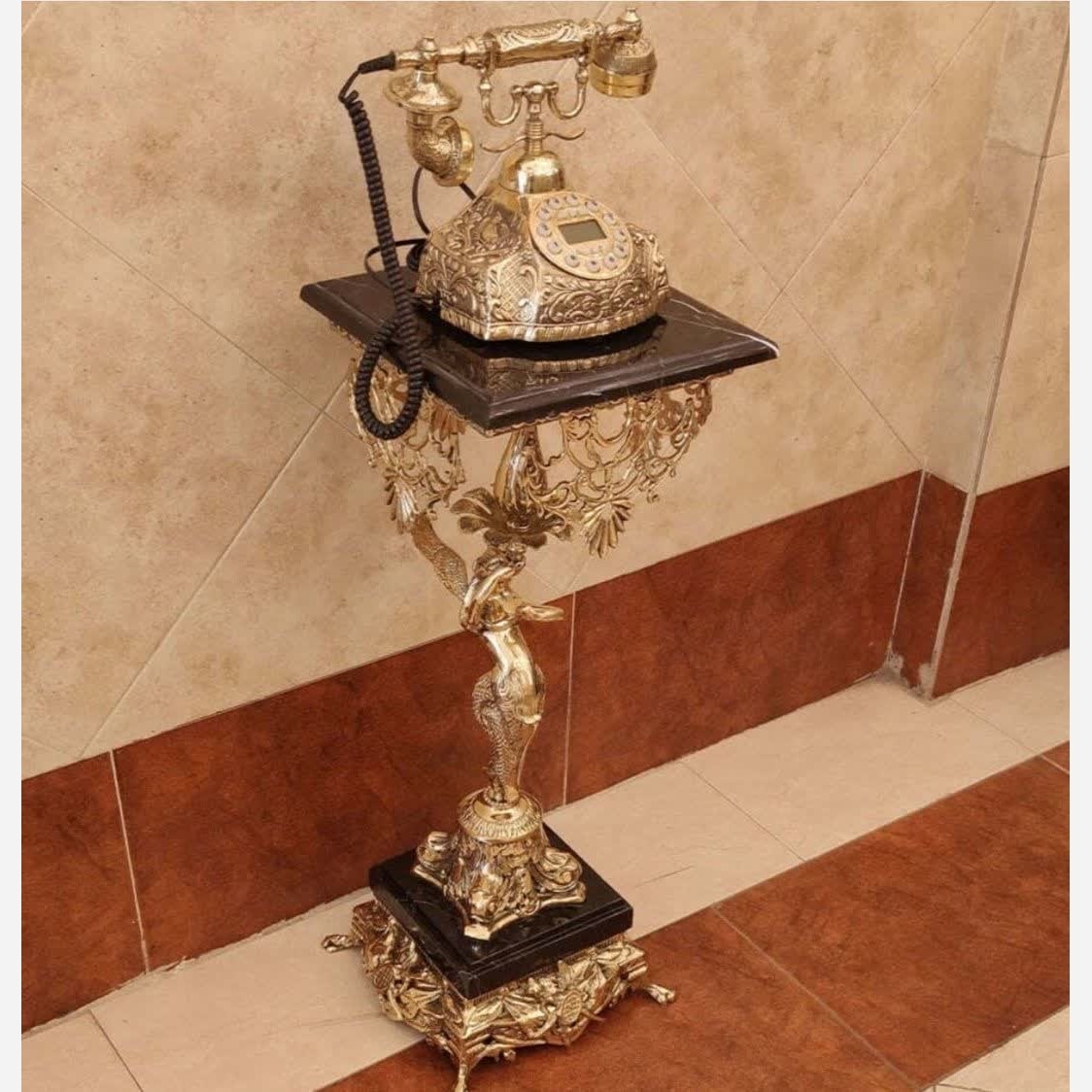اصالت و کیفیت را با ما تجربه کنید محصولی بخرید که یک عمر سرمایه باشه تلفن ایستاده کنار سالنی برنز طدح فرشته اکسسوری برنزی 3 پایه ماهی 4 پایه ماهی و پایه سنگی مدار درجه یک قابل استفاده آیدی کالر دار دکمه در رنگبندی تنوع بیش از 50 مدل تلفن پایه دار که در غرفه میتونید مدل هاشو ببینید