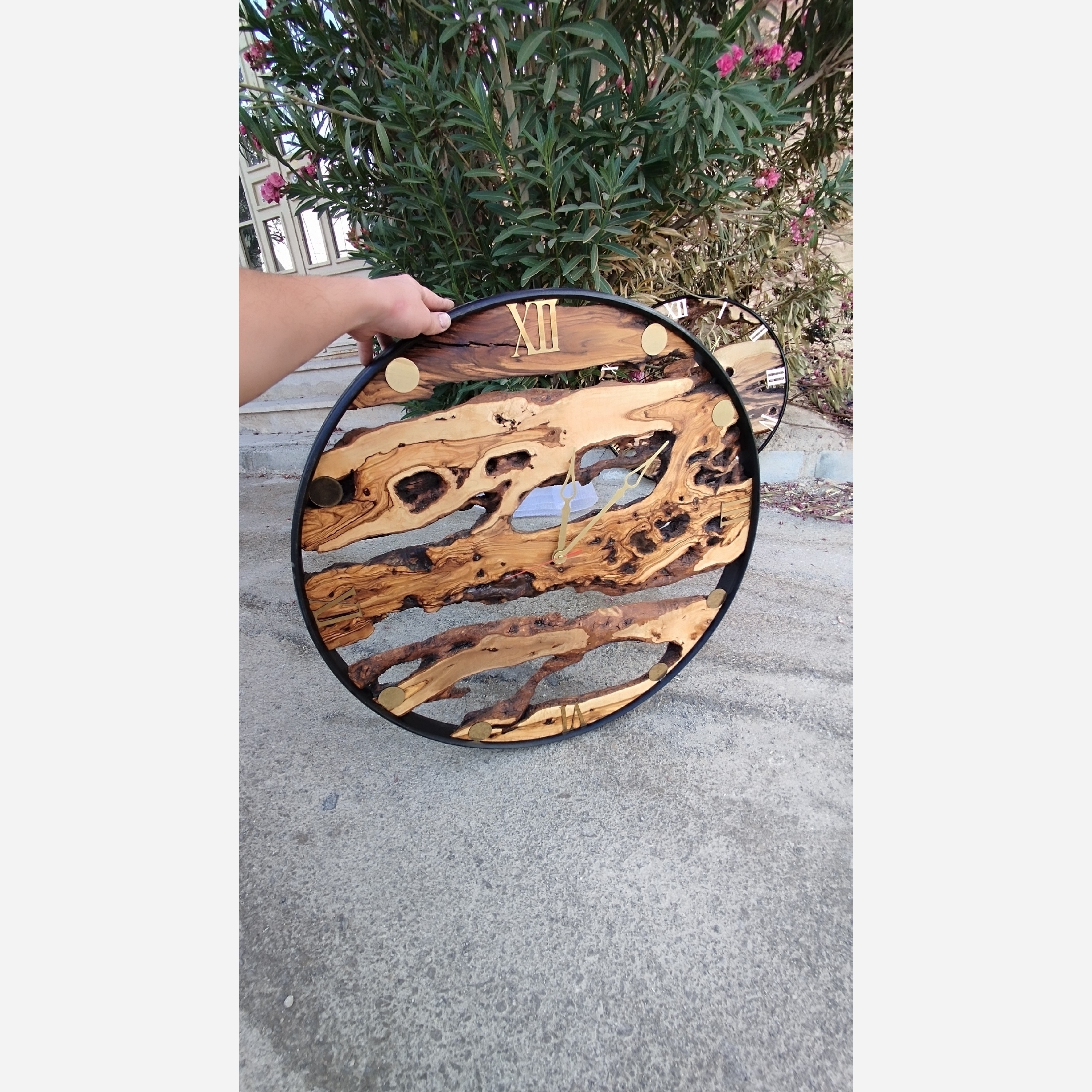 ‼️‼️عکس آگهی فروخته شده ‼️‼️ 🔴 طبق سلیقه شما نسخه دیگری ساخته میشه🔴 👈ساعت روستیک ساخته شده با چوب زیبای زیتون کاملا دست ساز ⚫قطر 70 سانت 🔴موتور آرام گرد و بی صدا ساخت تایوان با 2 سال ضمانت تعویض💥 ⚫چوب ها همگی خشک کن صنعتی رفته و بدون موریانه،کرم و حشره و...میباشند🐛🪰 ست اعداد رومی مولتی استایل در رنگ های مشکی،نقره ای،طلایی⚫⚪🟡 🔴عقربه با تنوع بالا و انتخاب شما 👈بسته بندی مطمئن و اصولی به همراه جعبه 👈ارسال با تیپاکس ‼️محصولات ما با نسخه های موجود بازاری تفاوت دارن