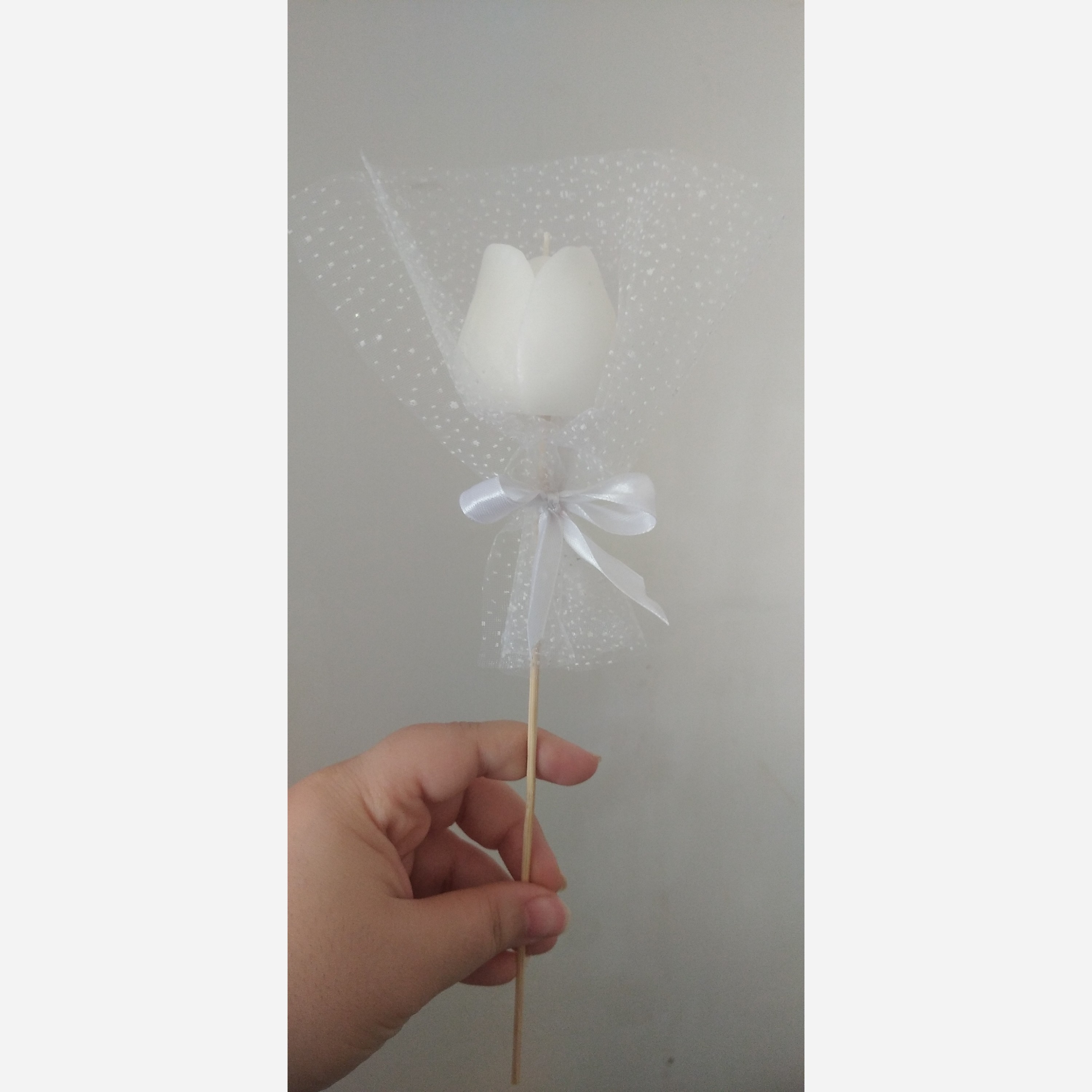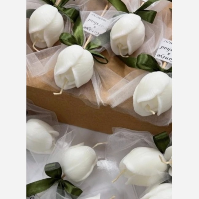 تاپر شمع لاله ب رنگ سفید ارتفاع شمع 4.5 ب رنگ سفید قابل سفارش هست مدت زمان ارسال بستگی به تعداد سفارشات شما داره کاری بسیار شیک برای گیفت عروسی و هدیه ب عزیزانتون