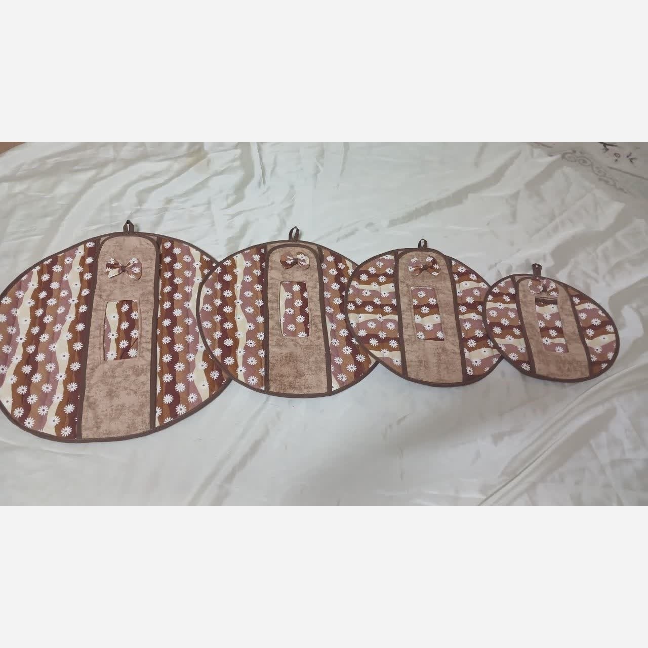 بیا ببین چی اوردم برات یه ست دمکنی در 4سایز مختلف خیلی راحت درب قابلمه رو بزار تمام دارای لایه مقاومت در برابر حرارت پارپه تمام نخ کتان و تترون بندینک هم داره برای اویز کردنش دیگه چی میخواهی