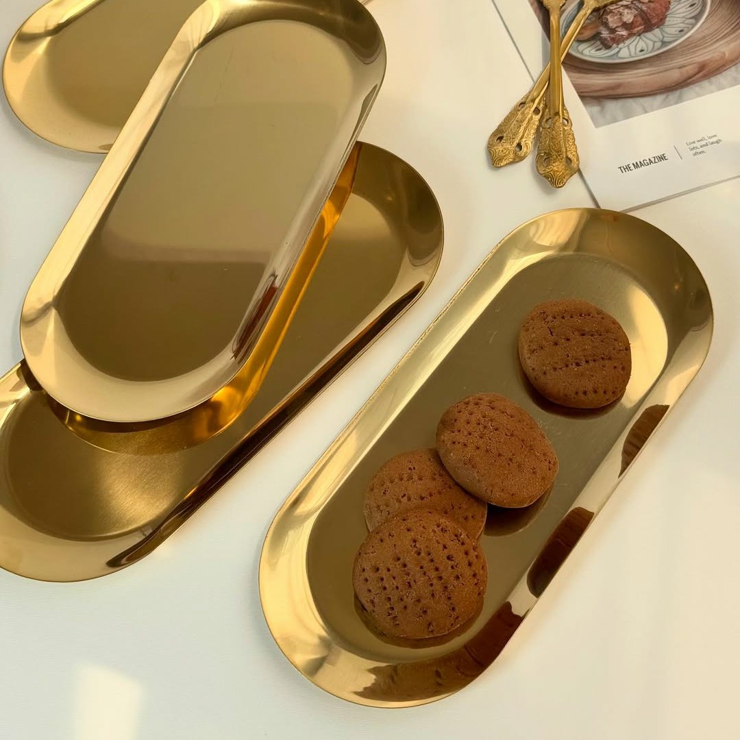 🌟رولت خوری بیضی استیل طلایی 🔴رنگبندی :یک رنگ ⚙️ متریال محصول : استیل 📐سایز محصول : طول30 عرض 12 🌍تولید کشور: چین 🇨🇳 📣توضیحات : قیمت برای یک عدد تابه می باشد-کیفیت بسیار بالا-بسیار شیک و خاص 🤝سفارش: دایرکت