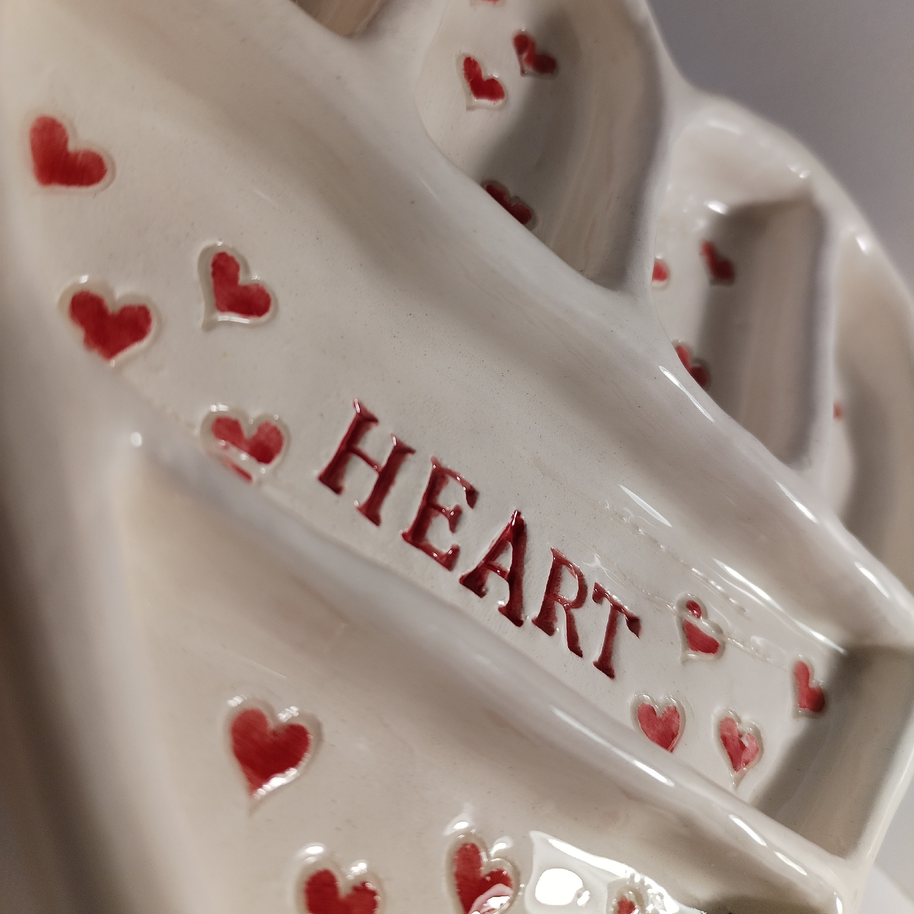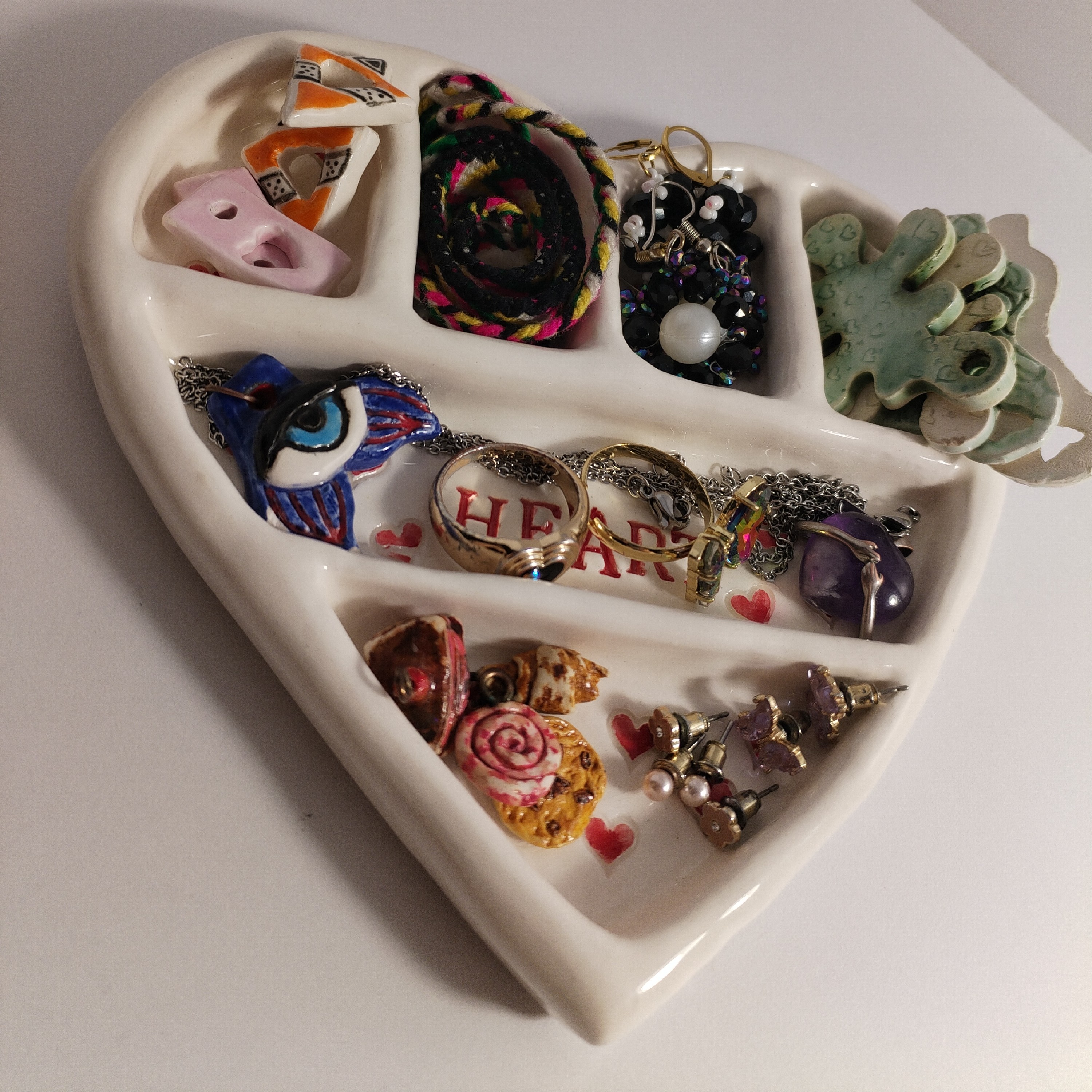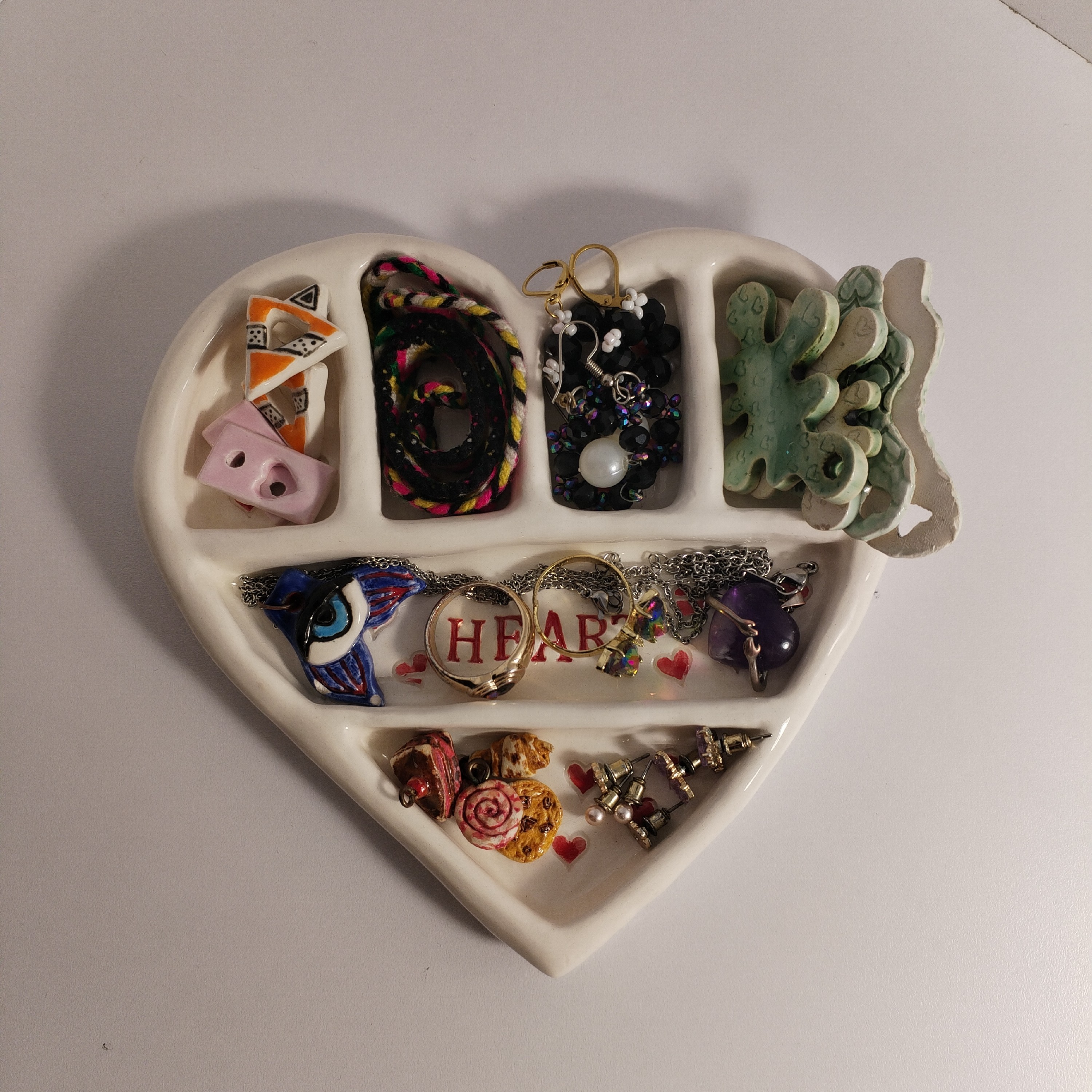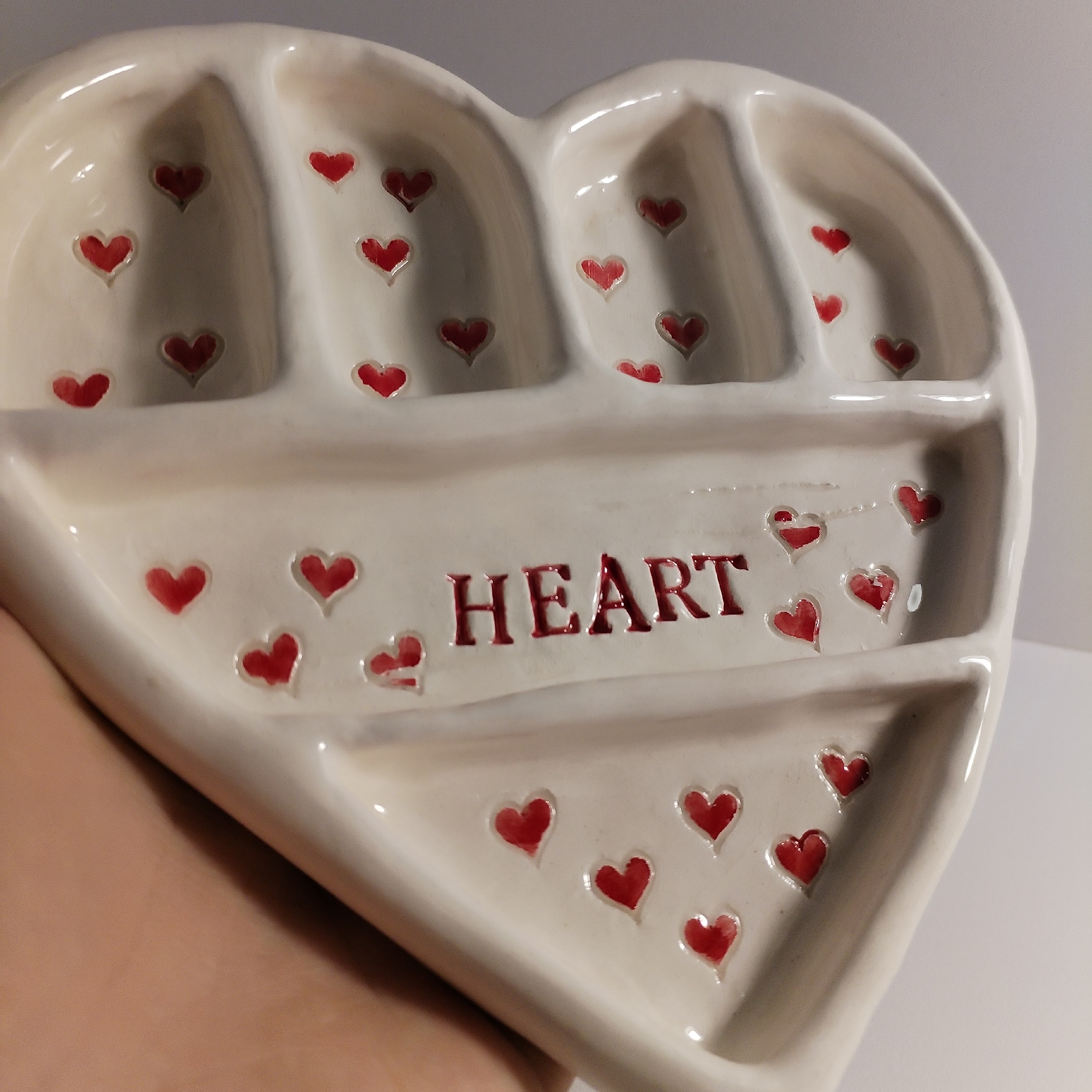 ⚱️جا اکسسوری سفالی دلبر⚱️ 🔸 حجم قلبی شکل با طرح قلب قرمز 🔸شش بخشی 🔸با نوشته Heart 🔸 قابل سفارش در رنگ هایی که تو هایلایت رنگ گذاشتم 🔸 امکان سفارش جا اکسسوری در مدل های مختلف 🔸در صورت سفارش دادن حداقل 20 روز طول میکشه که به پست تحویل بدم