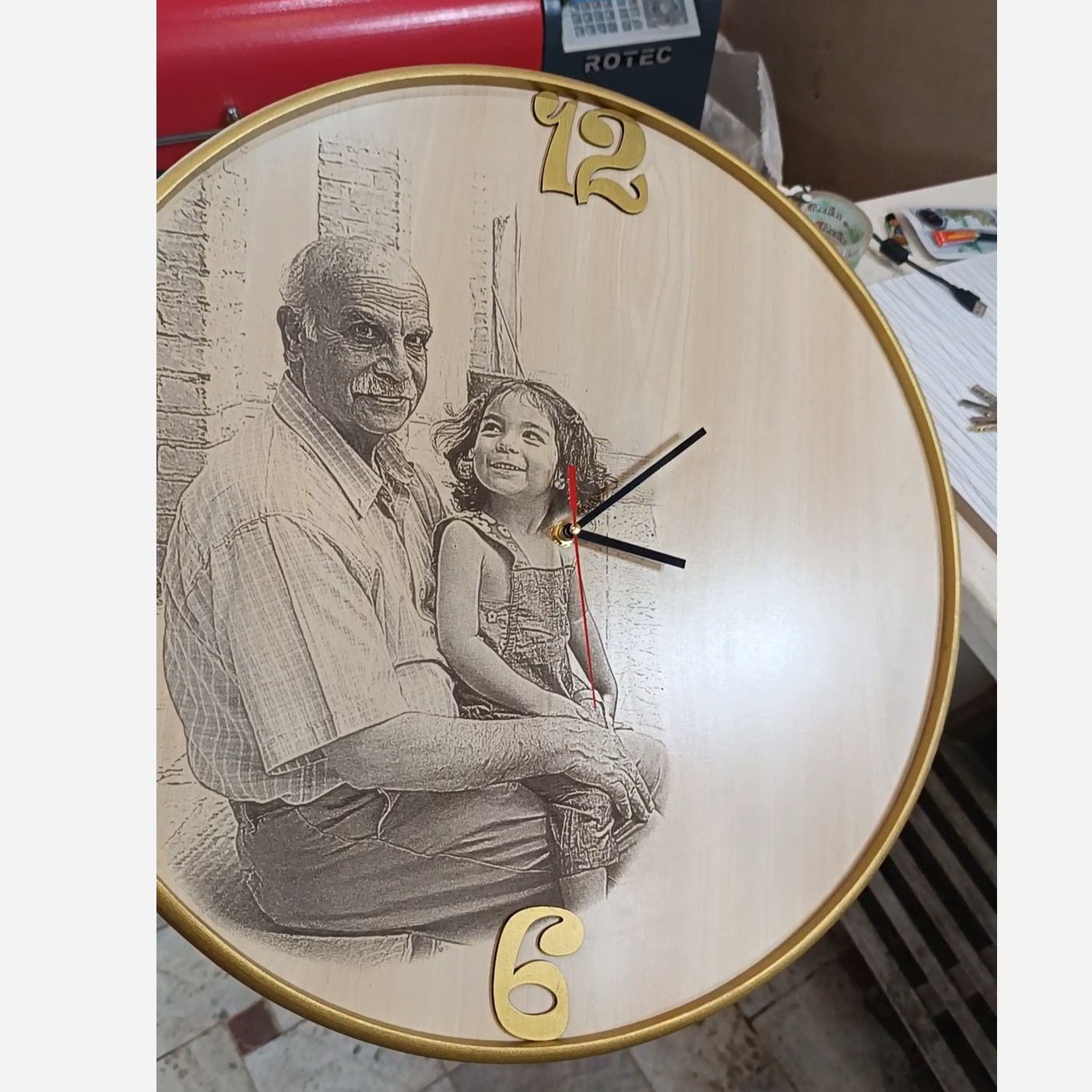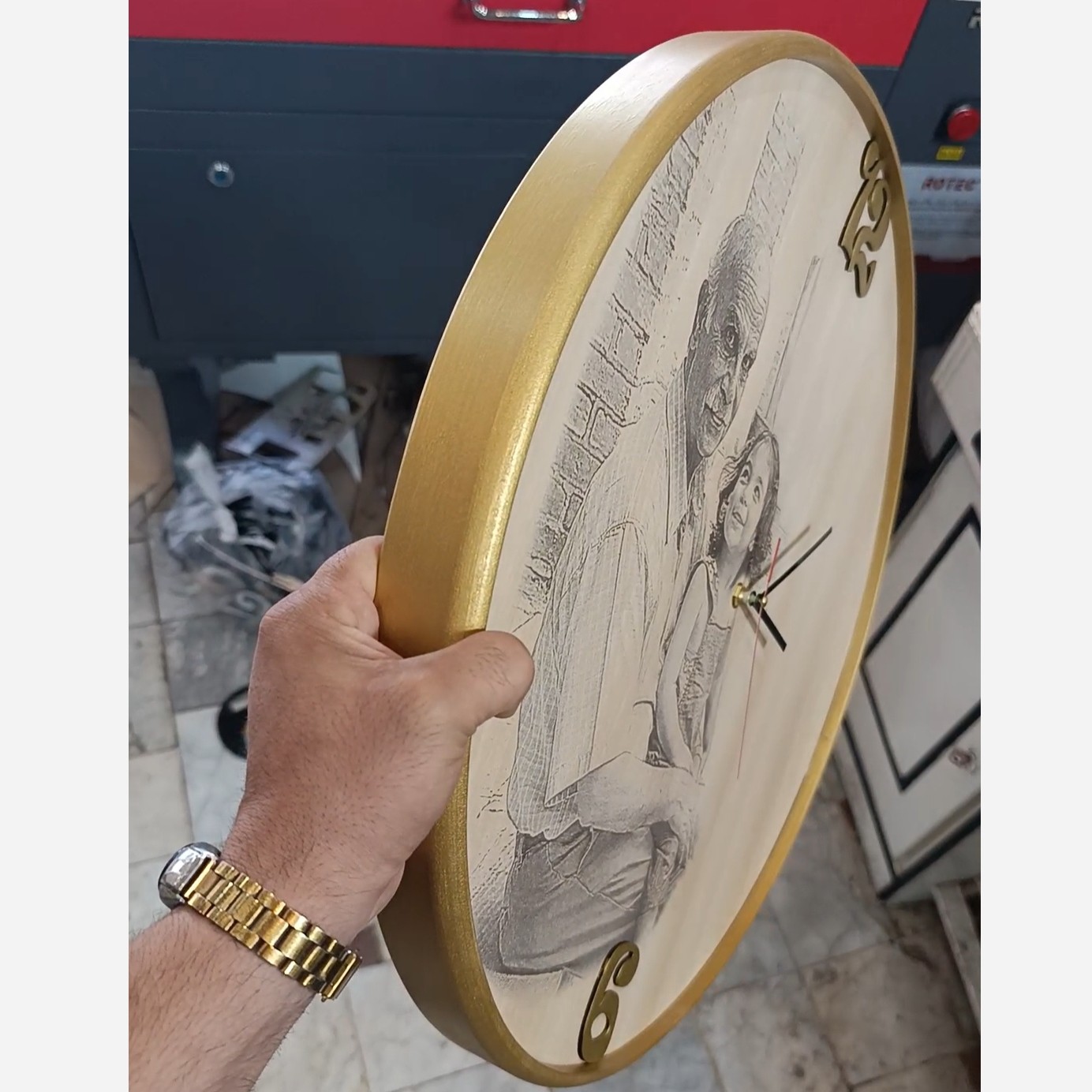 ساعت دیواری قطر 50 حکاکی تصویر شخصی با لیزر رنگ رینگ به درخواست شما موتور ارامگرد