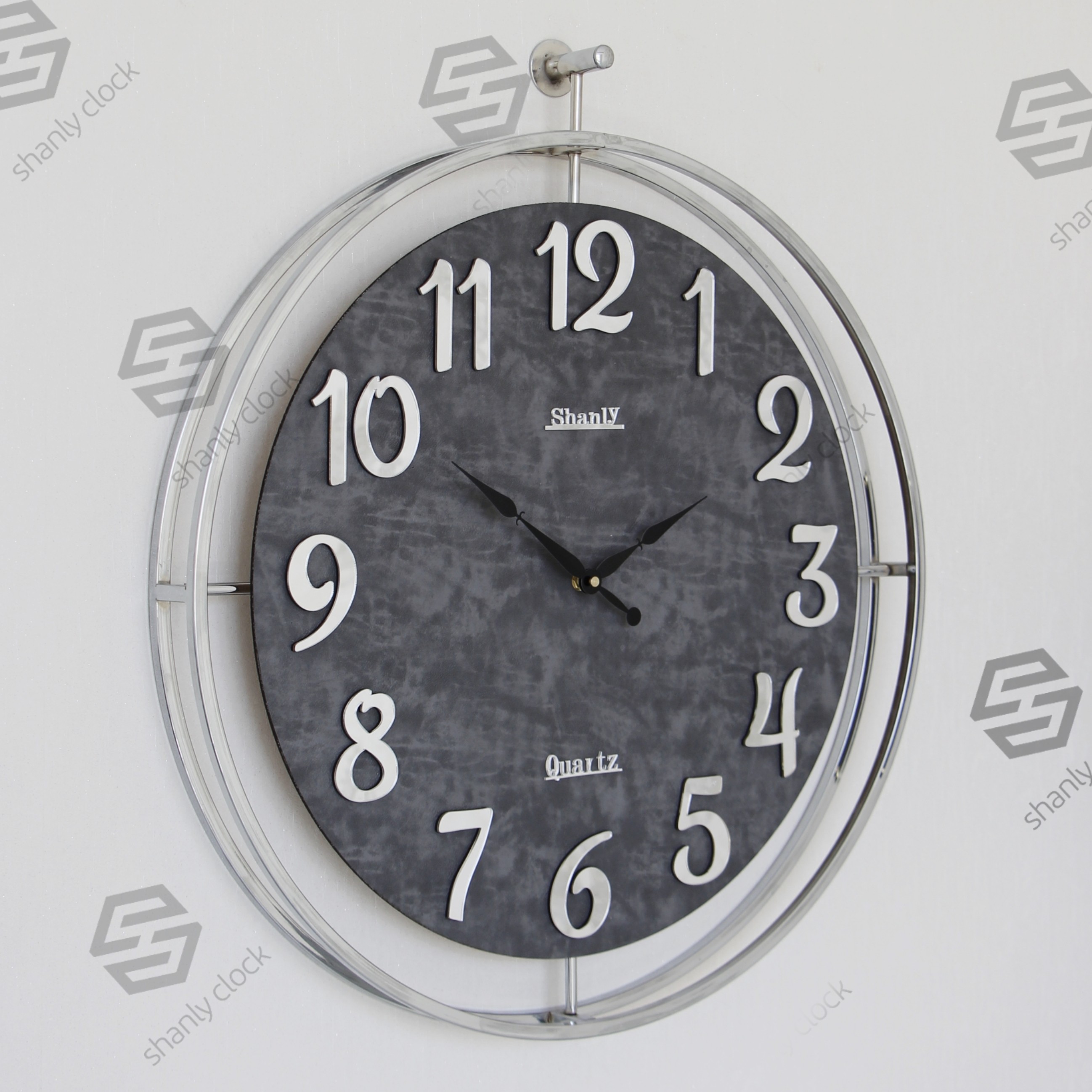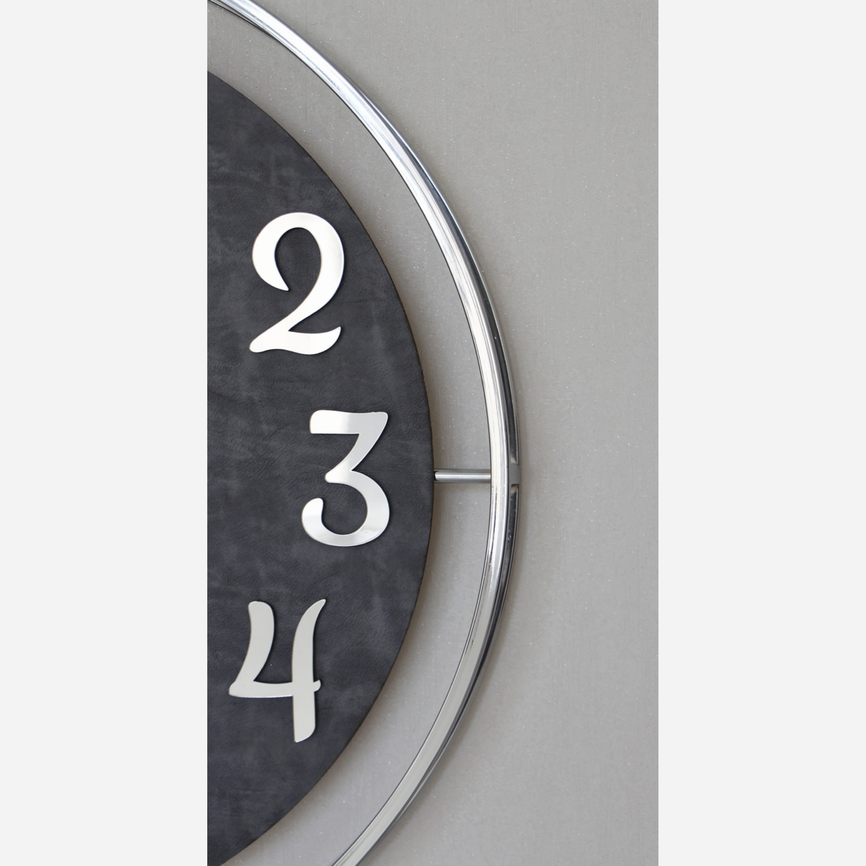 ساعت دیواری آبکاری فلزی چرمی نقره ای طوسی مبلمونسرا مدل 238243