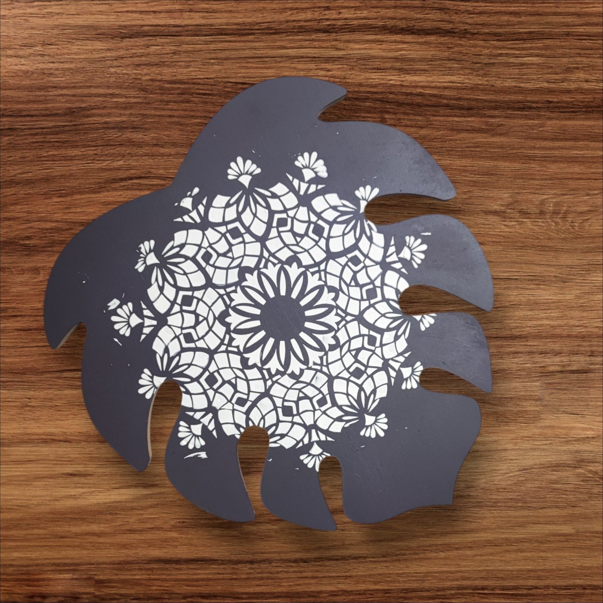 تخته سرو چوبی«ام دی اف» که به شکل برش خورده، از محصولات گالری « اِلی ساز » هست که با تکنیک نقاشی و شابلون و تکسچر به اجرا درآمده و با طرح کاملا خلاقانه تزئین شده است. رنگ این تخته سرو شیک، ترکیبی از سفید و بنفش تیره میباشد. در مرحله نهایی این تخته دکوراتیو با مواد تثبیت کننده کاور شده و قابلیت شستشو ملایم با دستمال نمدار را دارد. از این تخته سرو چوبی به عنوان تابلوی آشپزخانه هم میتوان استفاده کرد. مناسب برای سرو کیک، نان، پیتزا، ماگ و لیوان و استفاده در کافه ها. با قرار گرفتن روی پایه به عنوان تابلوی دکوری میتوان فضای آشپزخانه را آراسته کرد. ابعاد تخته چوبی فانتزی میباشد. تخته سرو، هدیهایست برای دوستداران هنر مدرن و جهیزیهای خاص. مناسب هر سنی.