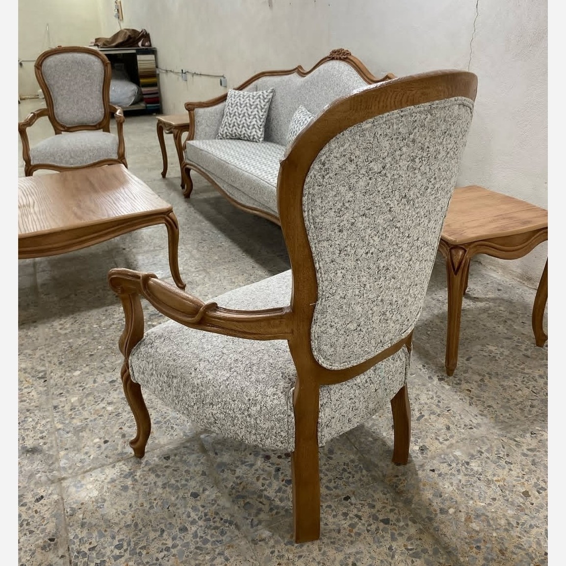 ست مبلمان فرانسوی 8 نفره طراحی منحصر به فرد در رنگ بندی چوب و پارچه