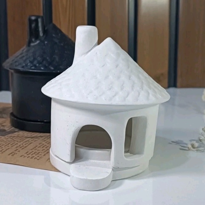 کلبه جا وارمری جذاب 😍🌱 به تنهایی یک دکوری جذاب گوگولی 🤩✨️ قابل رنگ آمیزی طبق سلیقه شما هم جا وارمر هم جا عودی مناسب هدیه