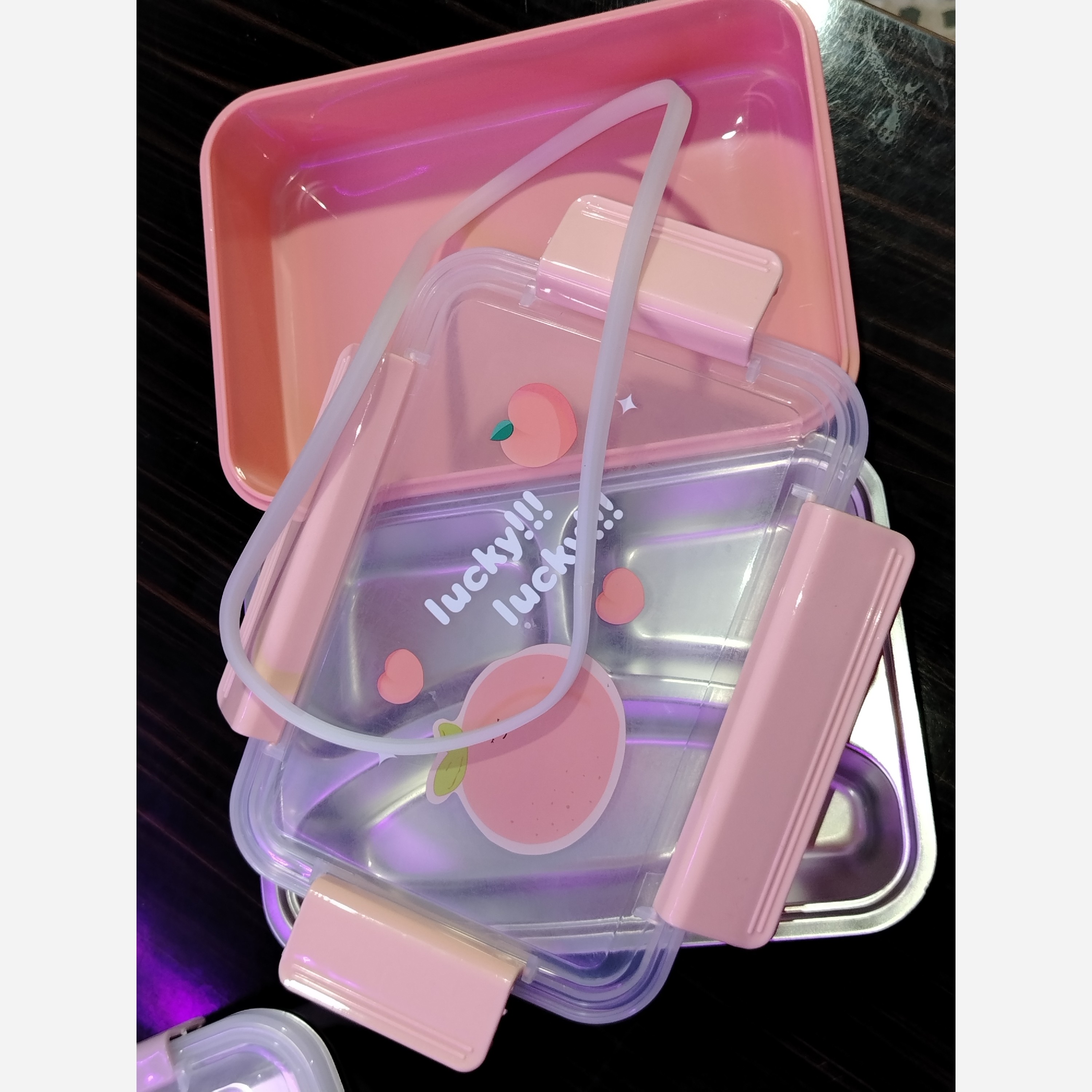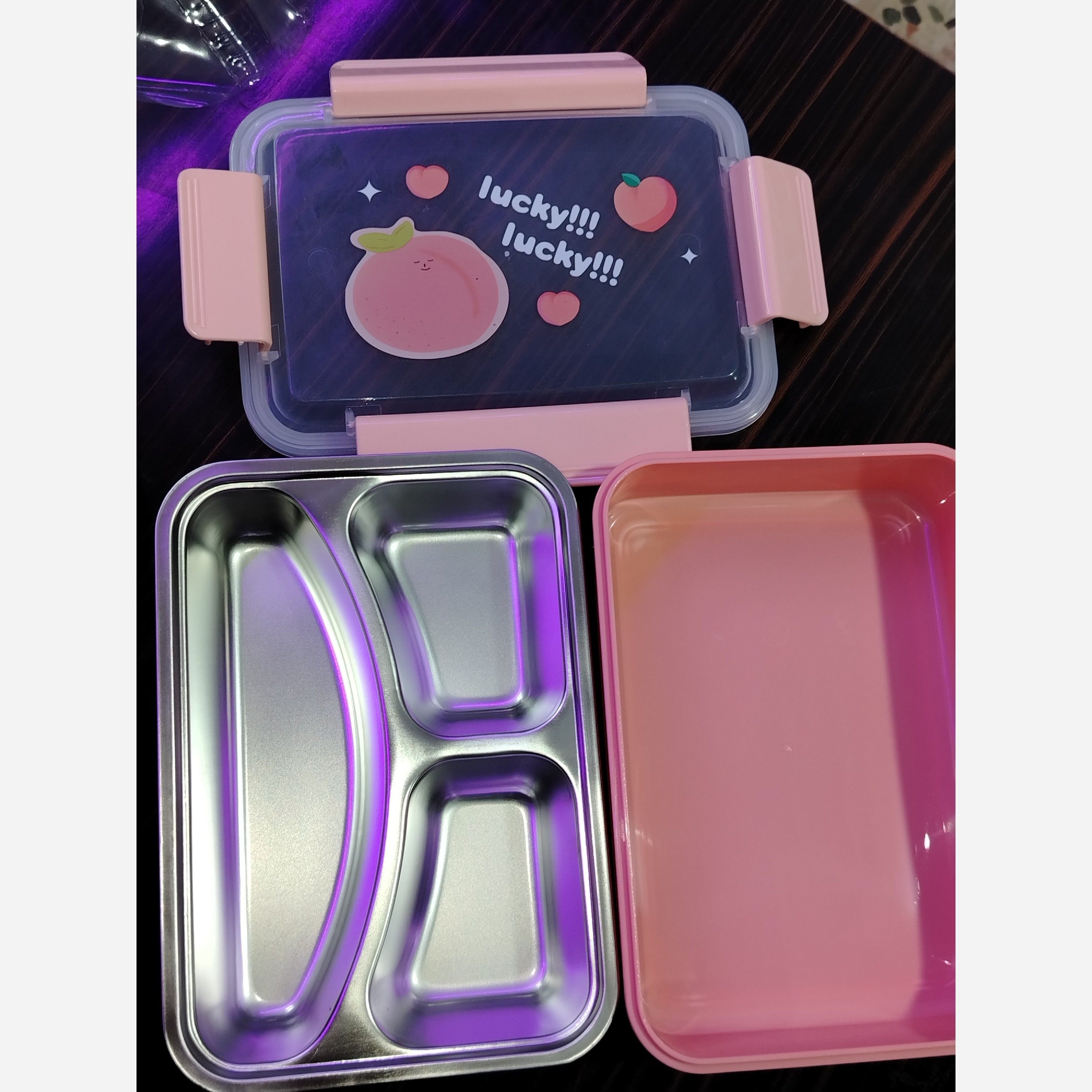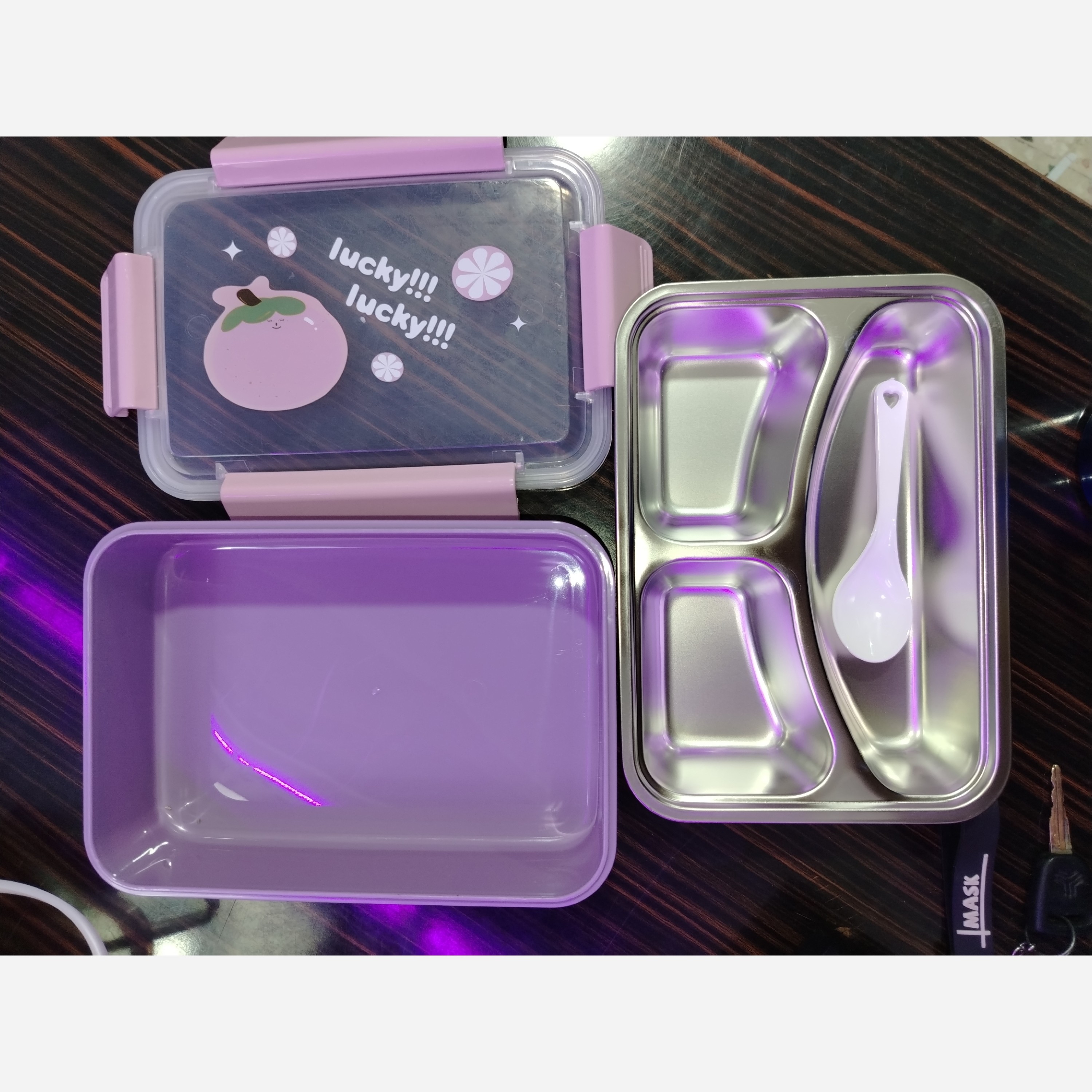 ظرف غذای کودک داخل استیل سه خانه. قاشق دار بسیار با کیفیت مناسب مدرسه، اردو، پیک نیک و مسافرت مناسب تمام سنین