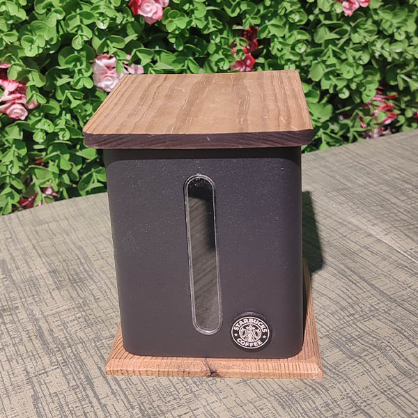 بانکه فلزی درب چوبی استارباکس دارای گنجایش 350 گرم پودر قهوه و 300 گرم دان قهوه است بانکه فلزی درب چوبی اگر کافی بار دارید و به زیبایی کافی بارتان اهمیت میدهید بانکه های فلزی استارباکس با درب و زیر چوب یکی بانکه زیبا و شیک است که حدود 350 گرم پودر قهوه در آن جای میگیرد و حدود 300 گرم دان قهوه در آن جای میگیرد. بانکه فلزی درب چوبی دارای یک پنجره کوچک و باریک طلقی است تا حجم پودر یا دان داخل بانکه بدون باز شدن درب دیده و تشخیص داده شود.