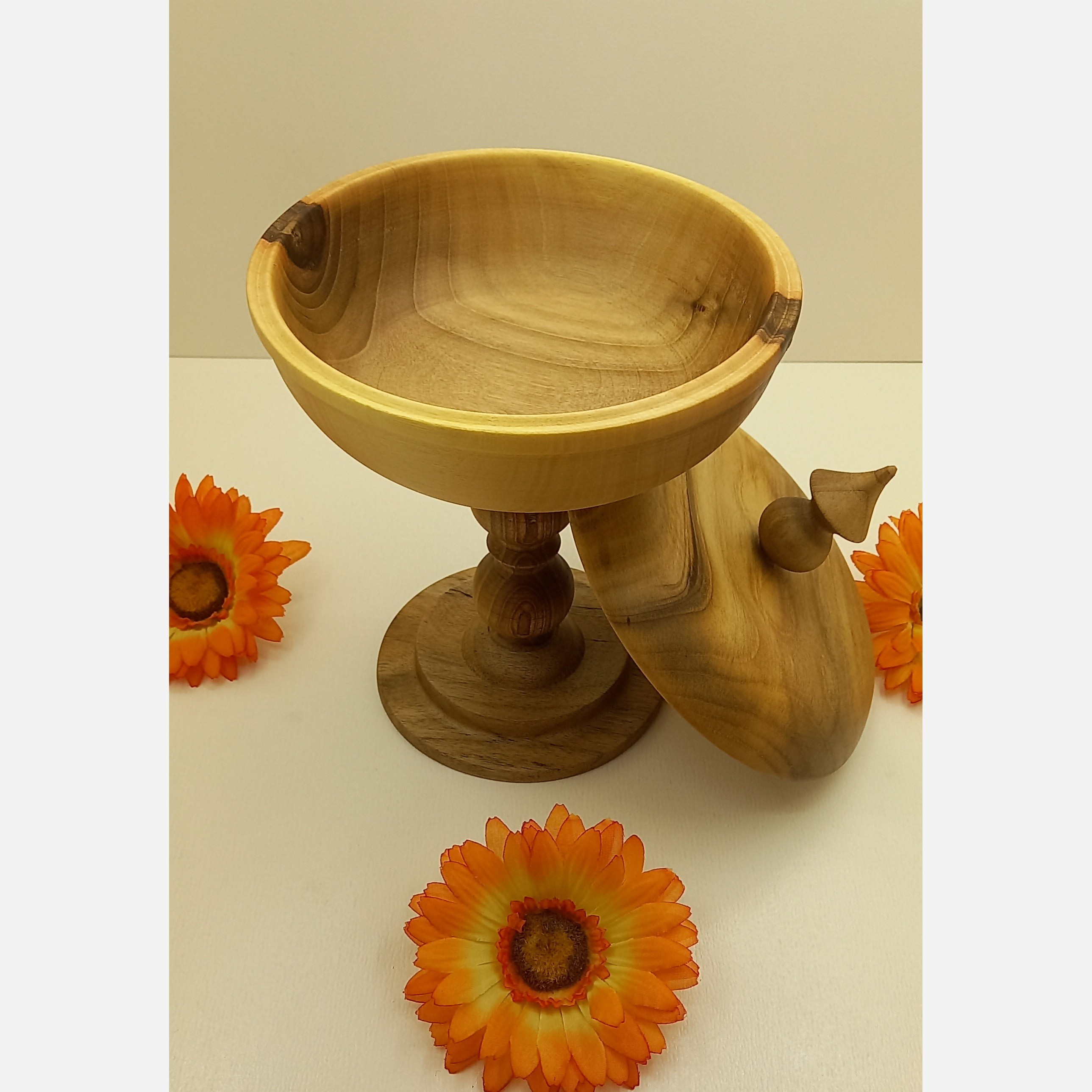 چوب طبیعی گردو ، دستساز ، خراطی ، روغنکاری شده ، پایه بلند
