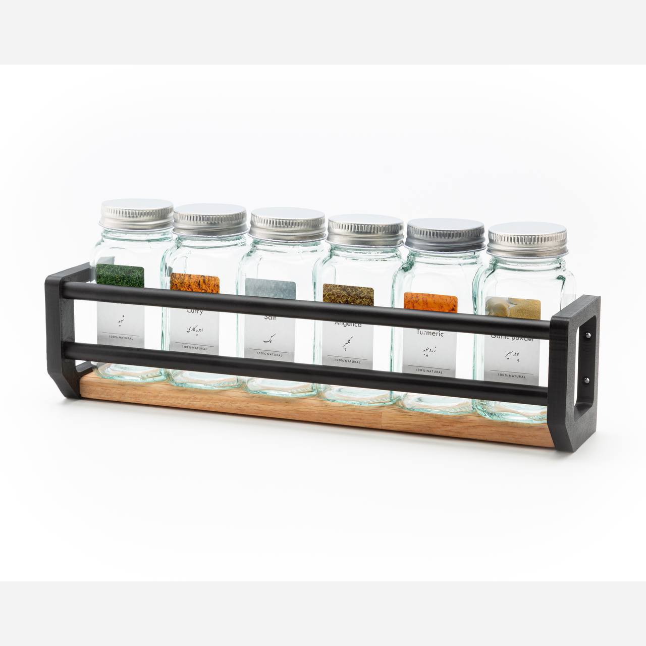 ✨✨ ✨✨✨✨ 🟣 استند ادویه دیواری 🥰 🌈 کیفیت عالی 👌 ✨ ترکیب چوب و فلز ⚡️ مناسب چیدمان و نظم دهی به آشپزخونه 💎 طول : 30 سانت همراه ، با لیبل