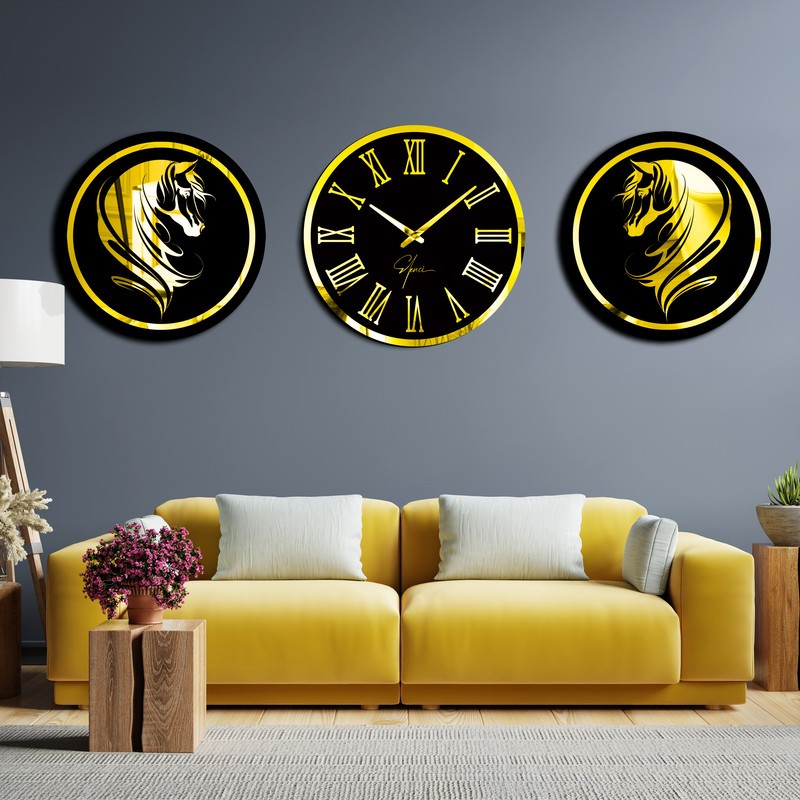 ساعت دیواری مدل اسب به همراه تابلو مبلمونسرا مدل 240563