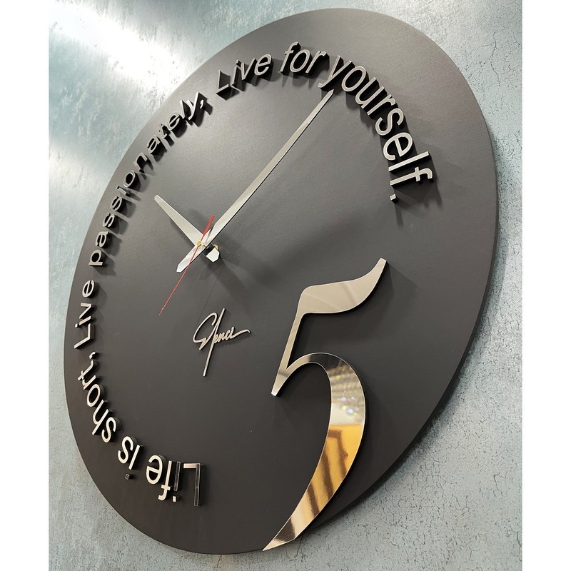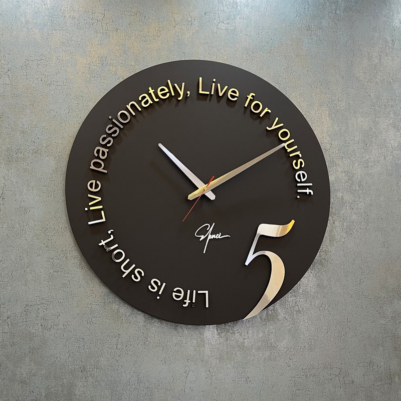 هیچ اکسسوری به اندازه ساعت نمی تواند به شما یک جمله انگیزیشی را یادآوری کند چرا که در طول روز چندین و چند بار از آن استفاده می کنید. ساعت دیواری لایف برای علاقه مندان به مباحث انگیزشی و توسعه فردی طراحی شده و مناسب استفاده در اتاق کار یا محیط جلسات و کار تیمی است. برند النسی که طراح و تولید کننده این اکسسوری می باشد، آن را بعنوان یکی از زیباترین مدلهای مناسب فضای کار و مطالعه معرفی کرده است. ساعت دیواری لایف از یک بدنه چوبی فوق سبک ساخته شده که بصورت مات رنگ آمیزی شده است. حروف و عدد 5 که طرحی متفاوت و خاص به ساعت بخشیده از جنس آینه های مولتی استایل براق ساخته شده و از ویژگی های آن ، برجسته بودن این بخش بوسیله اسپیسر های فومی است که سایه زیبایی روی صفحه ایجاد می کند. قلب ساعت دیواری لایف توسط موتور کوارتز اصل تایوانی ساخت کمپانی معروف و معتبر young town به حرکت در می آید. جنس قاب: MDF منبع انرژی: باتری نوع باتری: قلمی نمایش زمان: عدد - حروف مشخصات-ابعاد: 600x600x30 میلیمتر مشخصات-وزن: 1.5 کیلوگرم مشخصات-قطر صفحه: 60 سانتیمتر مشخصات-جنس قاب: MDF مشخصات-منبع انرژی: باتری مشخصات-نوع باتری: قلمی مشخصات-نمایش زمان: عدد - حروف