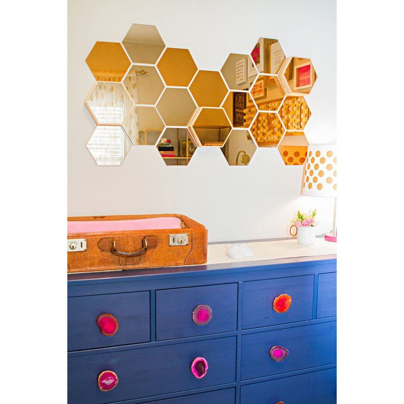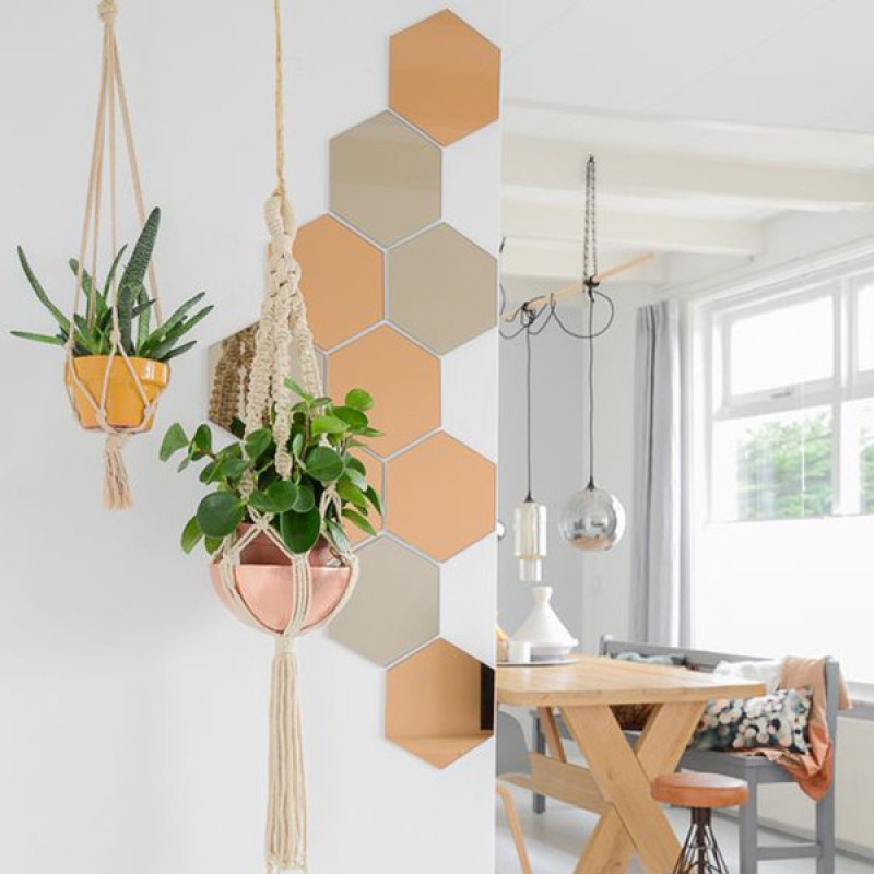 آینه طرح کندو شامل 14 قطعه شش ضلعی از جنس آینه های شیشه ای براق است که انعکاس کامل تصویر و نور در سطح آن بدون موج مشاهده می شود. جدا بودن و فرم زیبای 6 ضلعی این امکان را می دهد تا طرح دلخواه را روی دیوار اجرا کنید. می توانید از این نوع آینه روی انواع کناف ، سقف ، کمد دیواری یا کابینت، کاشی و سرامیک نیز استفاده کنید. همچنین ابزار مناسبی برای پوشش ترک ها یا لکه های دیوارست. این محصول بوسیله چسب دوطرفه موجود در پشت آینه روی کلیه سطوح صاف قابل نصب است. این محصول امکان انتخاب رنگ بصورت چند رنگ را نیز داشته که با انتخاب آن، از 14 قطعه آینه، 7 قطعه به رنگ نقره ای و 7 قطعه به رنگ آینه برنز ارسال می شود و در صورت انتخاب تک رنگ نقره ای یا برنز، تمامی قطعات با توجه به رنگ انتخابی ارسال می شود. نوع قرارگیری آینه: دیواری شکل آینه: چند تکه مشخصات-نوع قرارگیری آینه: دیواری مشخصات-ابعاد: 10.5x10.5x0.5 سانتیمتر مشخصات-وزن: 4000 گرم مشخصات-نحوه نصب: چسب دوطرفه مشخصات-شکل آینه: چند تکه مشخصات-تعداد تکه: تکه 14 مشخصات-سایر توضیحات: شامل 14 قطعه آینه 6 ضلعی هر ضلع 10.5 سانتی متر از جنس آینه های شیشه ای براق قابل نصب روی کلیه سطوح صاف امکان جابجایی بدون صدمه به دیوار