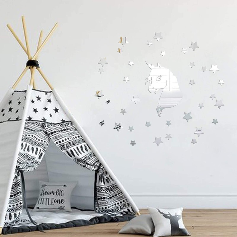 اين محصول از جنس آينه دکوراتيو مولتي استايل که بسيار سبک و انعطاف پذير بوده و مزيت آن نسبت به آينه هاي معمولي نشکن بودن و عدم آسيب رساندن ميباشد و به راحتی میتوان در اختیار کودکان قرار داده شود.برای نصب چسب دوطرفه فوم قدرتمندی بهمراه راهنما درون بسته محصول قرار گرفته است. آینه های مولتی استایل نسبت به آینه های شیشه ای از کیفیت پایین تری برخوردار بوده و صرفا جنبه تزئینی دارند..اين محصول توسط برند آماتيس طراحي و با بهترين کيفيت توليد ميشود.این محصول در رنگهای طلایی و نقره ای و مسی موجود میباشند .نايلون نازکي روي محصول قرار دارد که بعد از نصب بايد از روي محصول جدا شود تا شفاف و تميز شود.اين محصول در بسته بندي مخصوص برند آماتيس ارسال ميشود و ليبل اختصاصي آماتيس روي همه محصولات قرار دارد جنس قاب: پی وی سی نوع قرارگیری آینه: دیواری شکل آینه: چند تکه، چندضلعی منتظم، طرحدار مشخصات-جنس قاب: پی وی سی مشخصات-نوع قرارگیری آینه: دیواری مشخصات-ابعاد: 100x100x0.2 سانتیمتر مشخصات-وزن: 200 گرم مشخصات-نحوه نصب: به وسیله چسب دوطرفه موجود در بسته بندی محصول مشخصات-شکل آینه: چند تکه ، چندضلعی منتظم ، طرحدار مشخصات-سایر توضیحات: از جنس آینه فوق سبک مولتی استایل قابل نصب روی کلیه سطوح صاف امکان جداسازی و جابجایی بدون صدمه به دیوار ابعاد محصول حدودا 120 تا 160 سانتیمتر قابل نصب است دارای راهنمای نصب و چسب دوطرفه مورد نیاز نصب سایز اسب تک شاخ 40 در 22 سانتیمتر میباشد و تعداد 30 ستاره در سایز های مختلف همراه محصول قرار دارد نایلون روی محصول را با شیی نوک تیز بردارید تا تمیز و شفاف شود