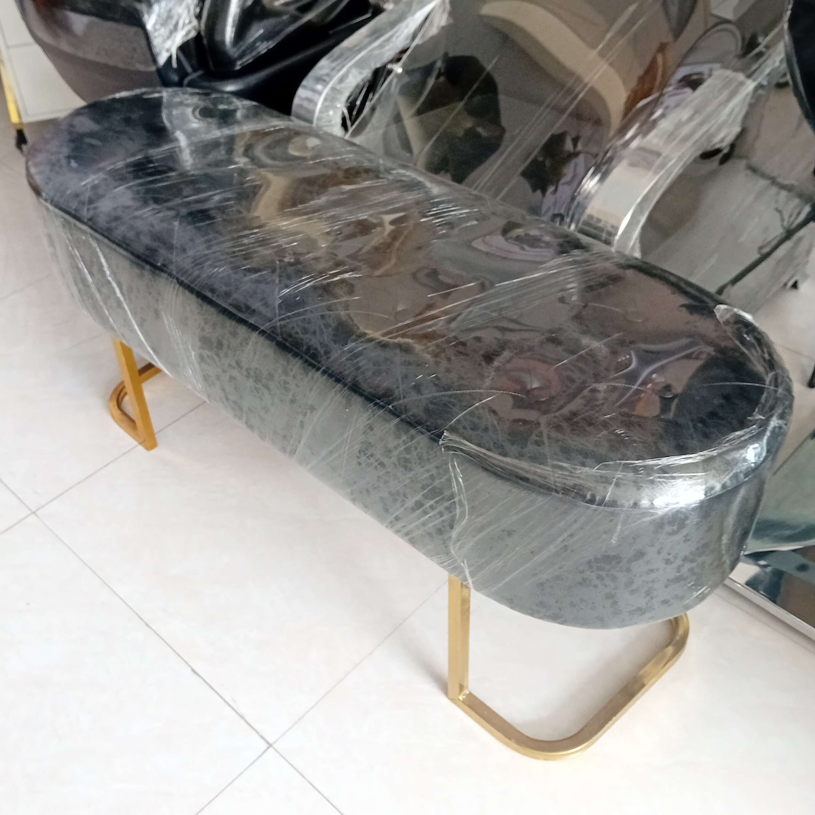 صندلی انتظار صنعت نواز زیبا و شیک و خاص ، پایه طلایی آبکاری شده ، چرم وارداتی براق و دکمه کوبی شده ، فوم یک تکه با عمربالا ، مناسب استفاده در آرایشگاه و سالنهای زیبایی .