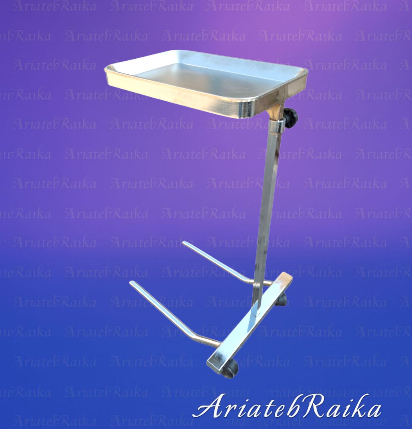 ابعاد : میز 150 تا 91* 32* 47 سینی 48 *32 بدنه : فلز پروفیل به همراه پوشش آبکروم چرخ : 50mm پلاستیکی درجه 1 نوع : با سینی, بدون سینی