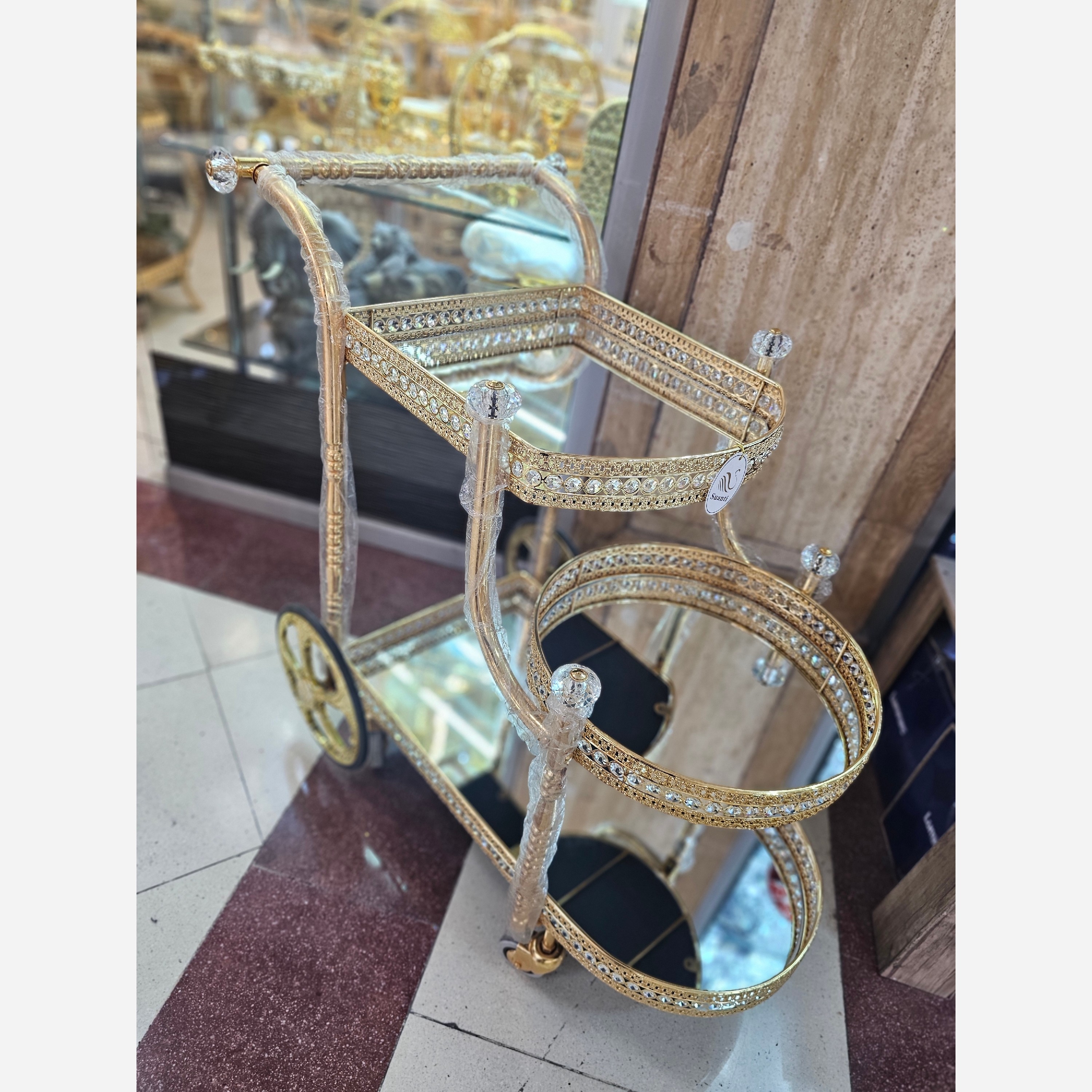 ✨ میزبار فلزی طلایی – درخشش خاص مهمانیهای شما ✨ طراحی لاکچری با رنگ ثابت طلایی براق مقاوم و بادوام با اسکلت فلزی محکم مناسب برای پذیرایی، کافیبار و دکور لوکس منزل ترکیب زیبایی و کاربرد؛ هم میز، هم ویترین شیک برای لیوان و بطریها و ظروف پذیرایی با این میزبار، پذیرایی شما همیشه درخشان و خاص خواهد بود 💛