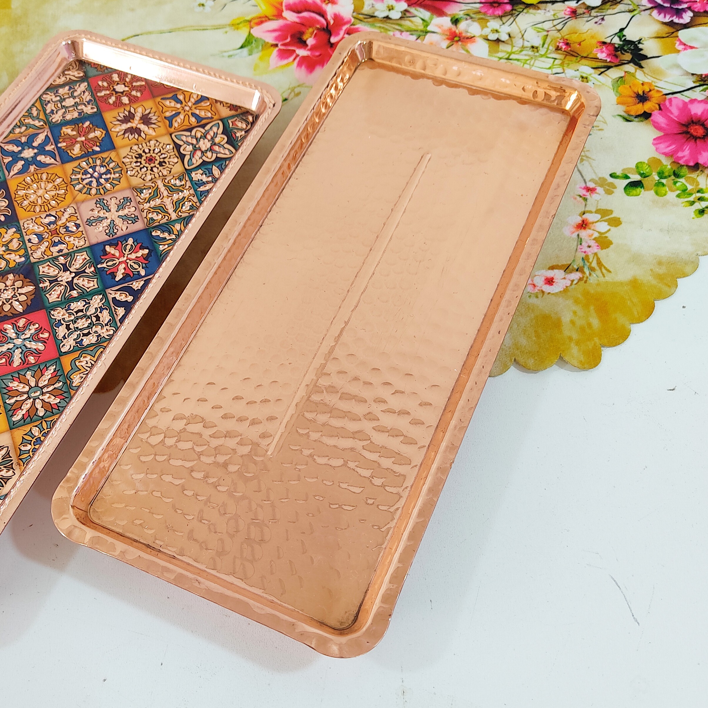 جنس: مس ضخیم و دستساز آبکاری و پوشش: پوشش نانو ضد لک و تغییر رنگ طراحی: مدل چکشی با 4 پایه کوتاه طول: حدود 31 سانتیمتر ساخت: زنجان – مرکز تخصصی تولید ظروف مسی ایران کاربرد: سرو رولت، شیرینی، میوه، آجیل، خشکبار، دسر و پیشغذا -- چرا این محصول رو انتخاب کنم؟ 1. ترکیب هنر و کیفیت: این رولتخوری با تکنیک چکشی و دقت بالای استادکاران زنجانی ساخته شده، که هم جلوهای لوکس دارد و هم ارزش هنری بالایی. 2. دوام فوقالعاده: استفاده از مس ضخیم باعث میشود سالها بدون افت کیفیت از آن استفاده کنید، حتی با استفاده روزانه. 3. پوشش نانو: این لایه باعث میشود رنگ ظرف ثابت بماند، لک و سیاهی کمتر ایجاد شود و شستوشو راحتتر انجام شود. 4. پایهدار بودن: علاوه بر زیبایی، سرو مواد غذایی را آسانتر و بهداشتیتر میکند، چون ظرف از سطح میز فاصله دارد. 5. کاربرد چندمنظوره: چه برای مهمانیهای رسمی، چه دورهمیهای خانوادگی، این ظرف میتواند مرکز توجه میز پذیرایی شما باشد. 6. سرمایهگذاری روی یک محصول اصیل: خرید این رولتخوری یعنی داشتن یک تکه از هنر و اصالت ایرانی که هرگز از مد نمیافتد ویژگیهای متمایز نسبت به محصولات مشابه ساختهشده از مس ناب زنجان، نه ورقهای بیکیفیت وارداتی ضخامت بالا برای جلوگیری از فرورفتگی و تغییر شکل پوشش نانو ضد لک که در بیشتر نمونههای بازار وجود ندارد طراحی چکشی دستساز که هر قطعه را منحصربهفرد میکند تضمین و پشتیبانی تضمین بازگشت وجه در صورت نارضایتی