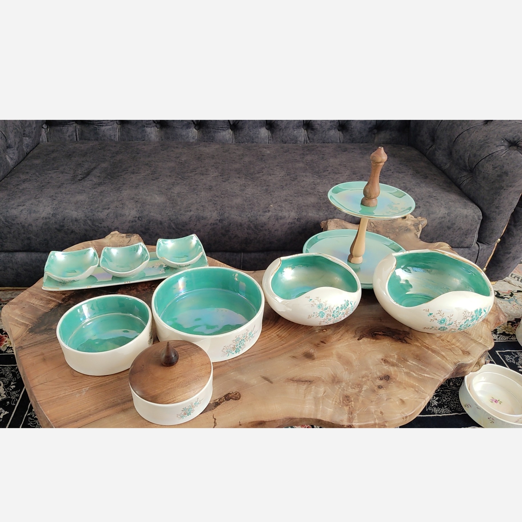 این قیمت برای میوه خوری و اجیل خوری گود میباشد کار دارای لاستر طلا و صدفی هفت رنگ میباشد ک براقیت کار را چند برابر کرده است بقیه ایتمها قابل سفارش است