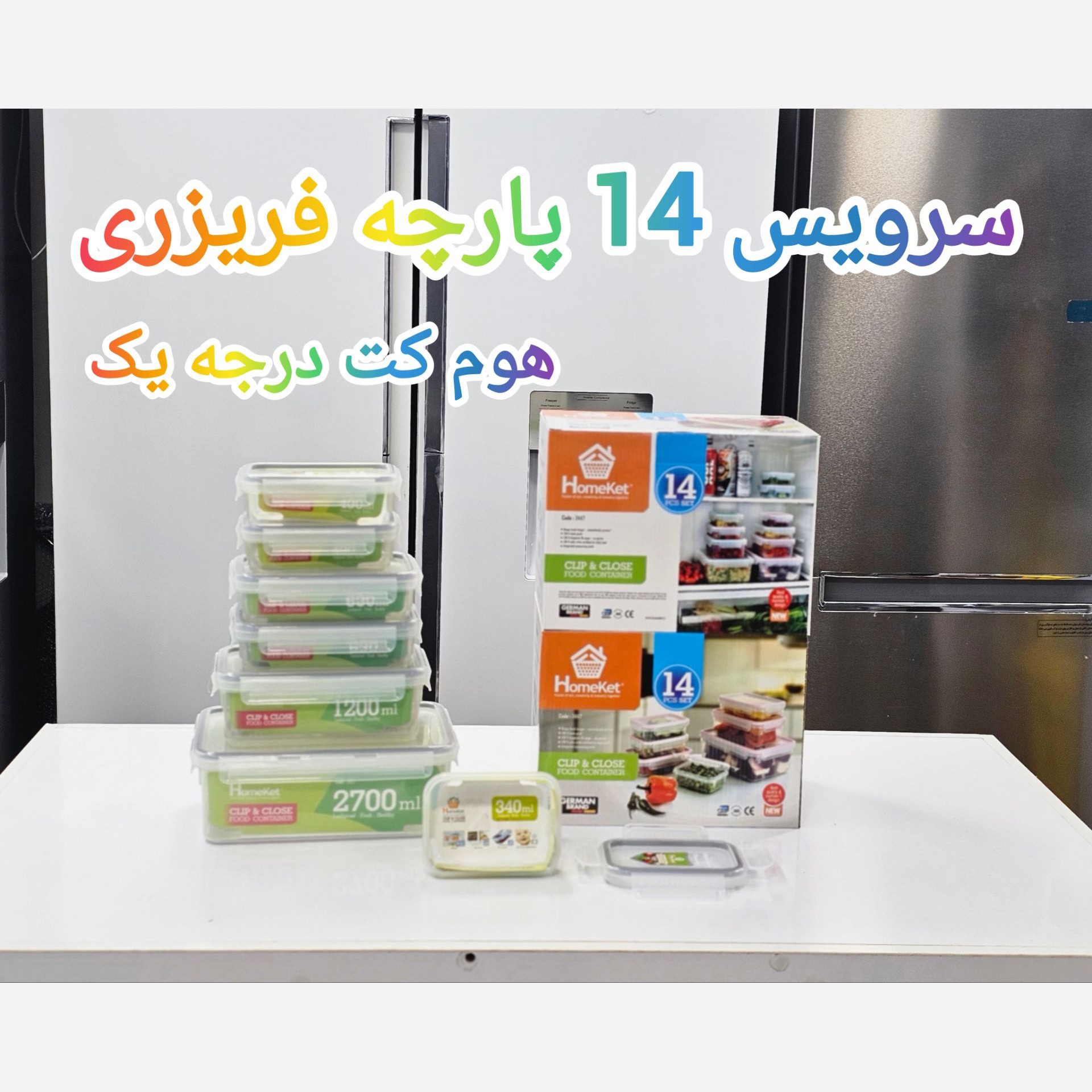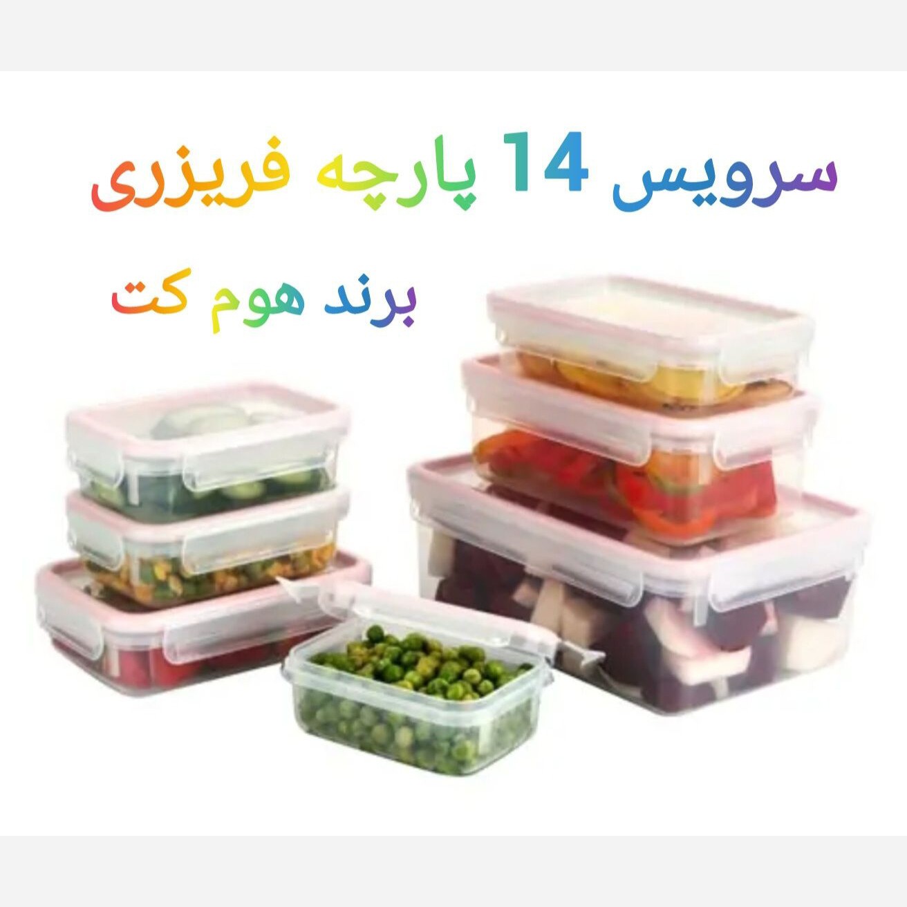 سرویس 14 پارچه فریزری هوم کت کد 3447 😍💥 این سرویس شامل 7 ظرف فریزری می باشد،یک ظرف 2700 میلی لیتری با ابعاد 25x18x9 سانتی متر،یک ظرف 1200 میلی لیتری با ابعاد 21x14x7 سانتی متر،دو ظرف 630 میلی لیتری با ابعاد 18x13x5 سانتی متر،دو ظرف 430 میلی لیتری با ابعاد 16x11x5 سانتی متر،یک ظرف 340 میلی لیتری با ابعاد 14x11x5 سانتی متر،ظروف فریزری هوم کت دارای درب هایی با قفل آسان باز شوهستند این ظروف مناسب برای نگهداری مواد غذایی به مدت طولانی ودارای نوار سیلیکون برای جلوگیری از تبادل هوایی که موجب محافظت مواد غذایی در برابر باکتری های هوازی می شود. قیمت تکی 👈 740