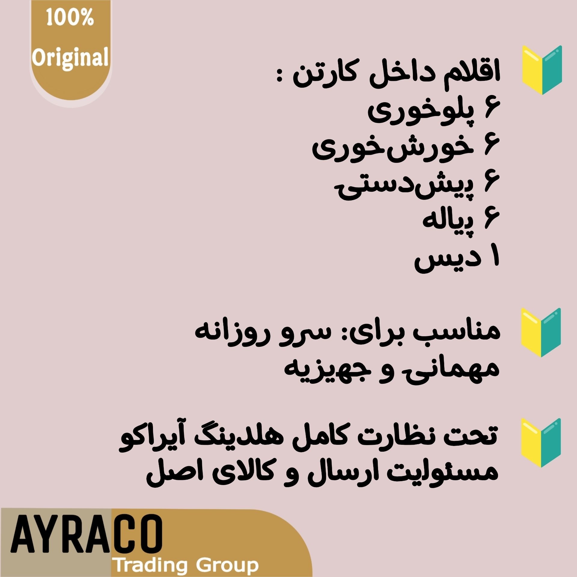 پشتیبانی و خدمات هلدینگ آیراکو خرید این محصول از آرکوکام به معنای خرید مستقیم و مطمئن از زیرمجموعه رسمی هلدینگ آیراکو است. ما تنها عرضهکننده نیستیم، بلکه همراه شما در انتخاب، خرید و استفاده از محصول خواهیم بود. خدمات ما شامل: تضمین اصالت و کیفیت درجه یک بستهبندی ایمن و مطمئن برای ارسال سالم کالا مشاوره قبل از خرید برای انتخاب طرح مناسب پشتیبانی آنلاین و تلفنی پس از خرید تخفیفهای ویژه برای مشتریان وفادار