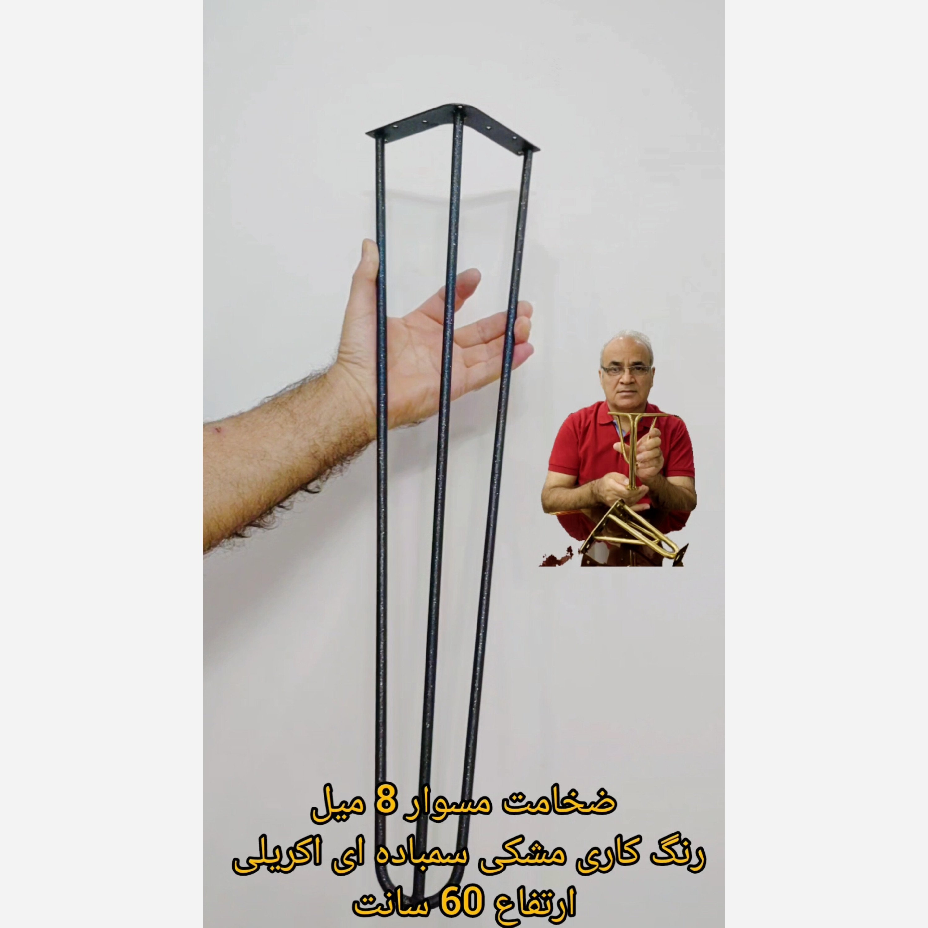پایه مدل سنجاقی ارتفاع 60سانت ضخامت مسوار 8میل رنکاری مشکی سمباده ای اکریلی جنس اهن با پایه های فلزی میز ناهارخوری و عسلی استحکام و زیبایی را به خانه خود بیاورید. این پایه ها با طراحی های متنوع و مدرن جلوه ای خاص و لوکس به مبلمان شما میبخشند و فضایی دلنشین و چشم نواز خلق میکنند. در دنیای یراق آلات مبلمان و کابینت ما به کیفیت افتخار میکنیم و به همین دلیل هیچ گاه به سمت تولید محصولات بی کیفیت و ارزان قیمت نرفته ایم هدف ما فراهم آوردن بهترین و بادوام ترین یراق آلات برای شماست تا زیبایی و کارایی را همزمان تجربه کنید. محصولات با کیفیت ما فقط یراق آلاتی را تولید میکنیم که استانداردهای بالای کیفی را رعایت کند. دوام و ماندگاری محصولات ما برای طول عمر بیشتر طراحی شده اند و به شما اطمینان میدهند که در درازمدت با کمترین نیاز به تعویض عملکرد داشته باشند. اعتماد مشتری ما به ارائه محصولاتی متعهد هستیم که به مشتریانمان احساس رضایت و اعتماد بدهند. اگر به دنبال یراق آلات با کیفیت و معتبر هستید به جای قیمت به ارزش واقعی فکر کنید!