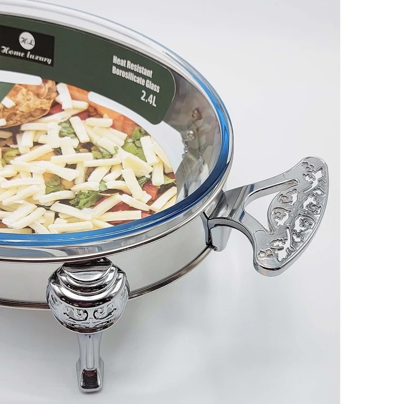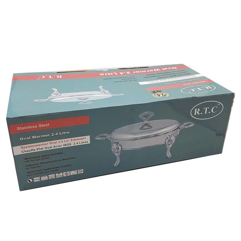 سوفله خوری استیل آر تی سی RTC سوفله خوری استیل RTC یکی از محصولات با کیفیت برند آر تی سی می باشد که در مهمانی ها بسیار کاربردی است.این محصول دارای یک قسمت برای قرار گیری شمع بوده تا موقع قرار گیری آن بر روی سفره ، غذای شما گرم بماند.داخل این سوفله خوری نیز از جنس پیرکس با کیفیت عالی میباشد . برخی از ویژگی های خاص این محصول : ساخته شده از استیل ضدزنگ استیل با ضخامت 0.7 میلی متر گنجایش : 2.4 لیتر کیفیت ساخت بالا همراه با پایه و دستگیره طلایی که زیبایی و جلوه خاصی به محصول میدهد