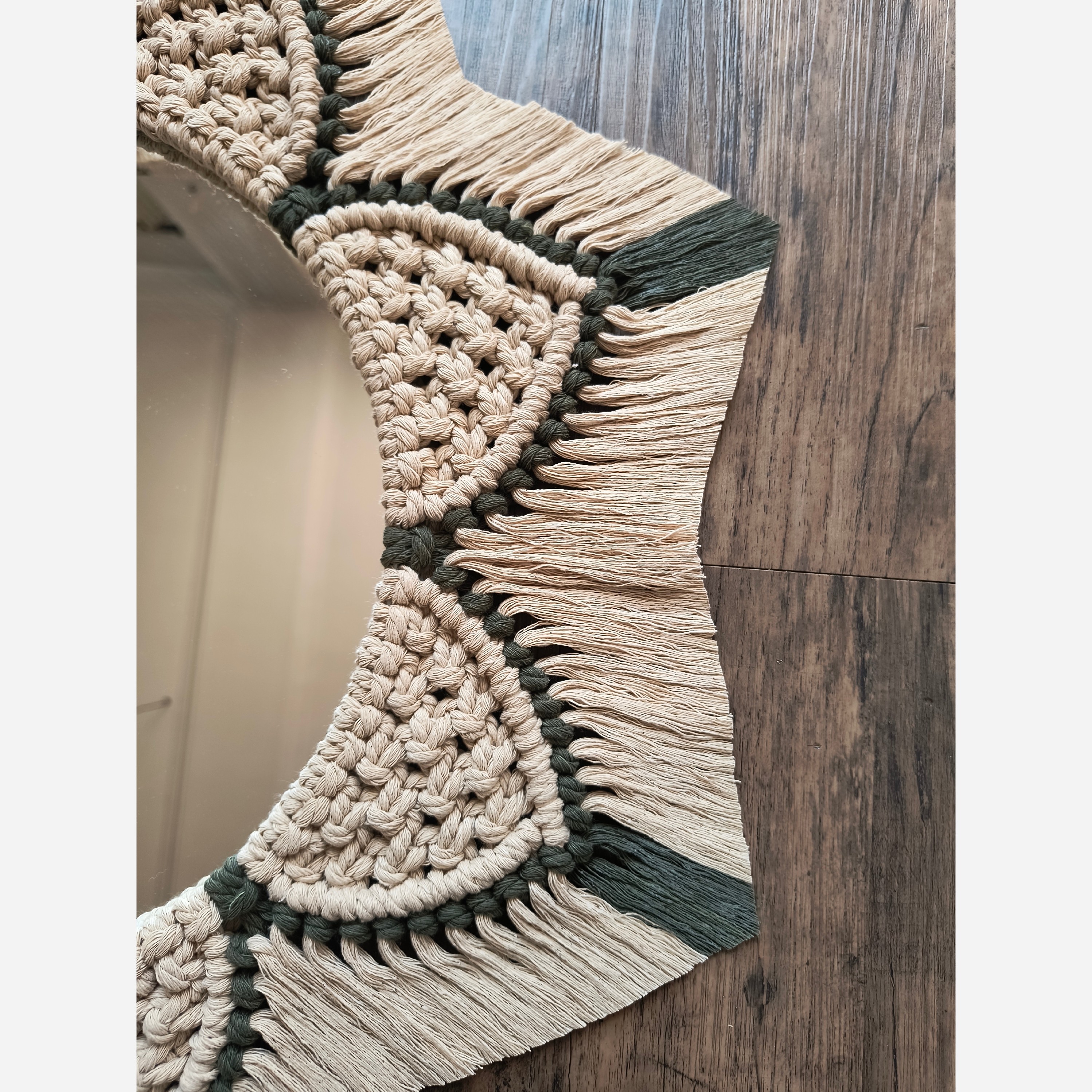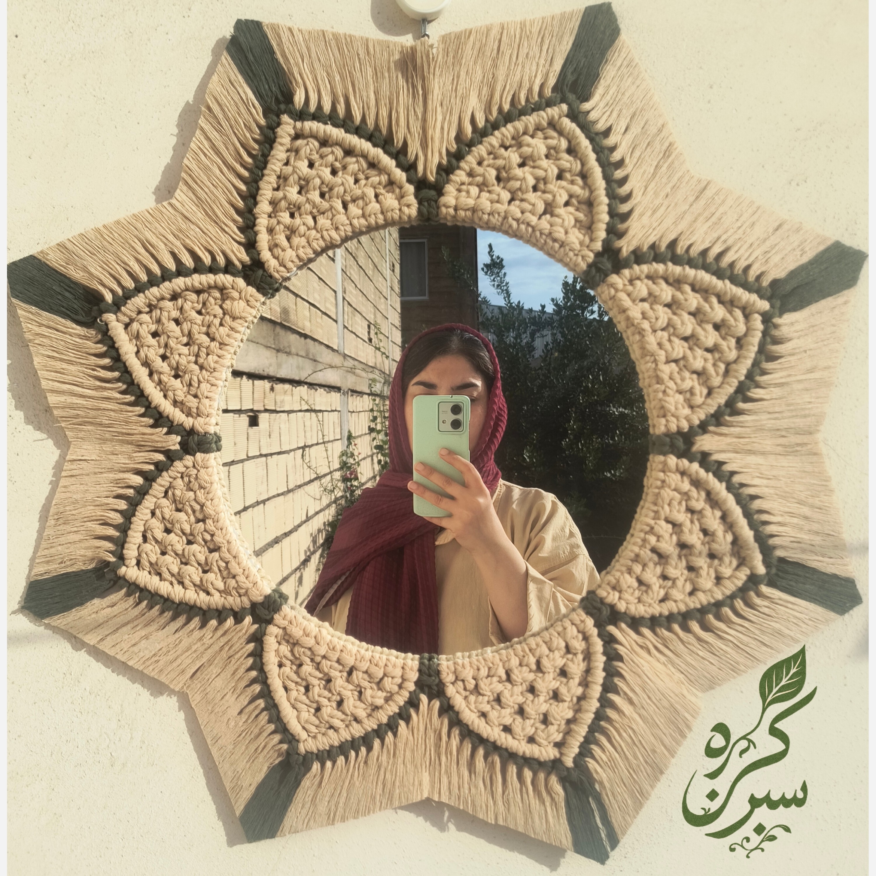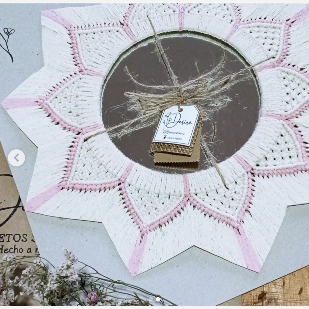 🔹آینه مکرومه بافی 🔹قطر آینه 30 سانت 🔹قطر کل کار 55 سانت 🔻امکان تغییر رنگ وجود داره 🔻امکان کمتر شدن تعداد هلال ها به دلیل اندازه نخ وجود داره.