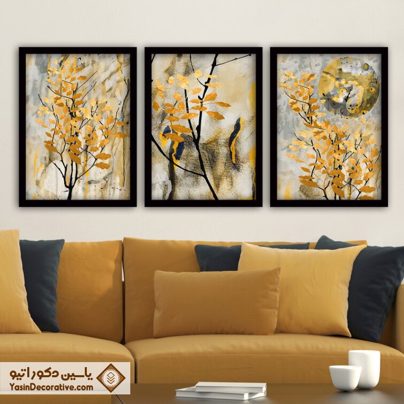 تابلو دکوراتیو طرح نقاشی رنگ و روغن شاخه طلایی مبلمونسرا مدل 268562