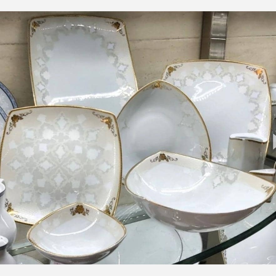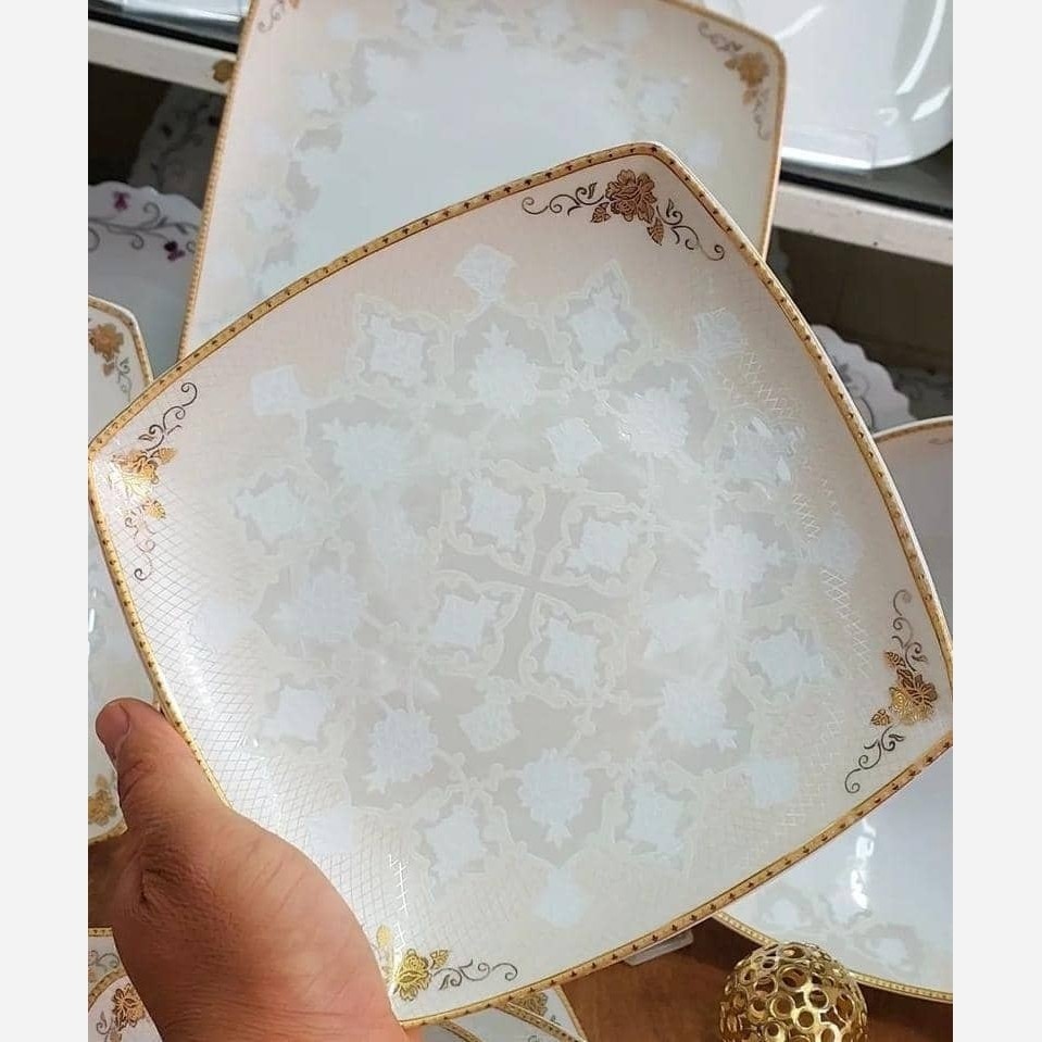 سرویس چینی پردیس کاشان طرح کاژین طلایی 30 پارچه 6 نفره درجه یک با قابلیت فر و ماشین اقلام 6 پلو 6 خورش 6 ماست 6 پیش دستی 2 دیس 1 کاسه بزرگ 1 سس خوری 2 نمکدان
