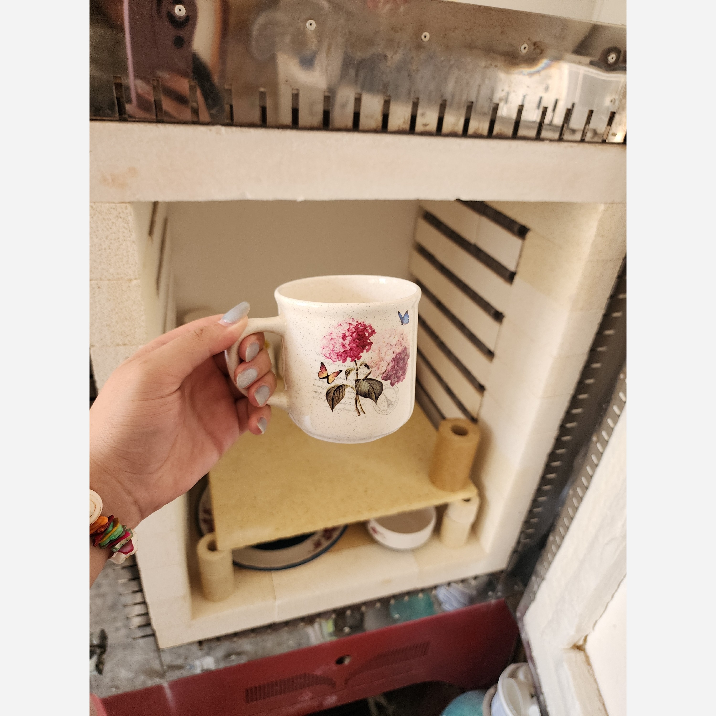 ماگ سرامیکی دستساز طرح گل انگلیسی مبلمونسرا مدل 272380