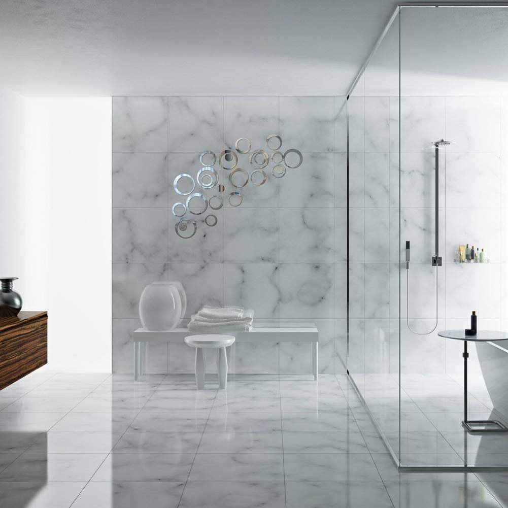 استیکر دیواری آینه ای مدل زیبا ،شیک ،براق ،نشکن ،دکوراتیو،جابه جایی آسان با حرارت سشوار،نصب با چسب دوطرفه با کیفیت بالا ،غیر سمی ، آسان برای اعمال و حذف ، قابل استفاده مجدد نیست.لایه محافظ را روی سطح محصول جداکنید ، دیوار راصاف ، وتمیزومرتب کنید بعدمحصول را روی دیوار بچسبانید. برای اینکه محصولی کاملاً به دیوار بچسبد ، توجه داشته باشید که هنگام باز کردن محصول ، ممکن است متوجه شوید برخی علائم خراشیده شده یا گرد و غبار روی محصول وجود دارد. اما لطفا نگران نباشید ، زیرا این محصول توسط لایه محافظ پوشانده شده است. بنابراین اگر لایه محافظ را جدا کردید ، می توانید یک آینه تمیز ببینید.می توان از آن برای تزئین اتاق نشیمن ، اتاق خواب و حمام استفاده کرد,همچنین می تواند به عنوان هدیه به دوستان ، شرکا و خانواده های شما هدیه داده شود.