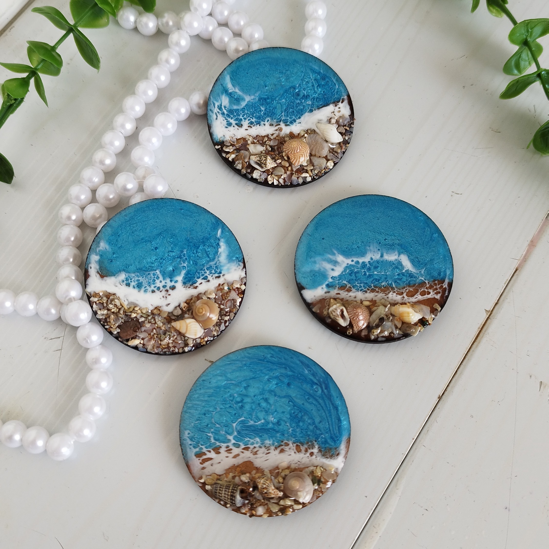 مگنت های رزینی طرح دریا اقتصادی و جذاب و مناسب برای دیزاین آشپزخانه و پنجره های اتاق و منزل ساخته شده از شن و صدف طبیعی سایز 5 سانت