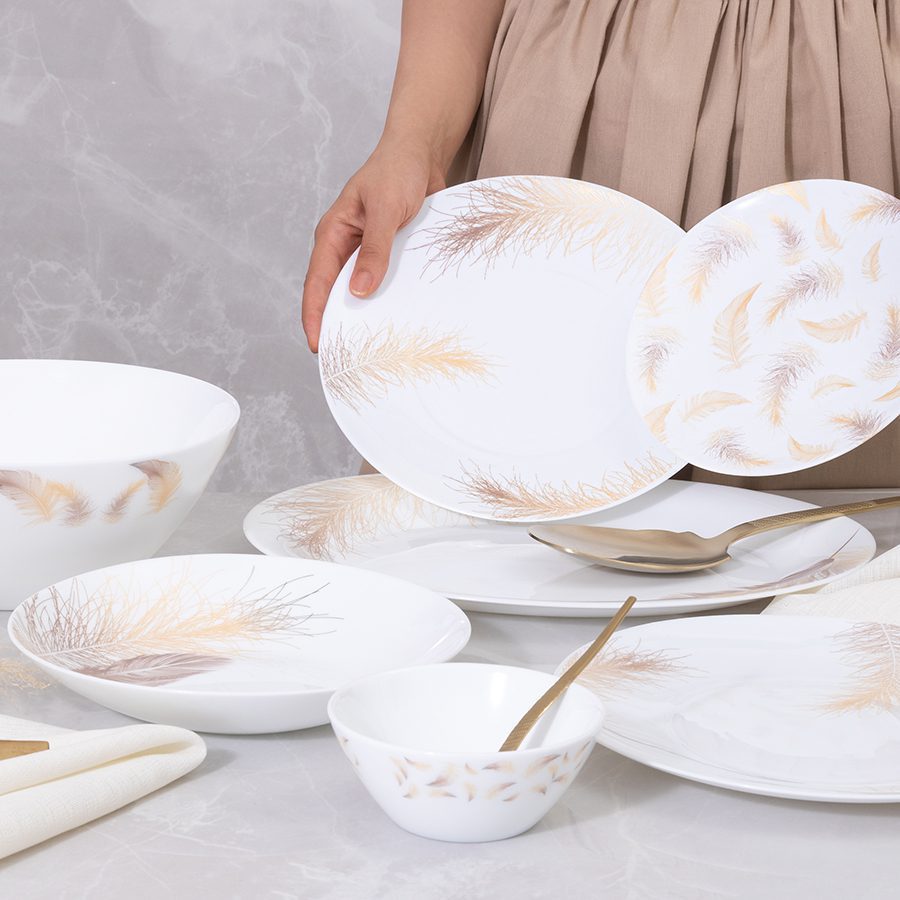 بشقاب تخت250mm, بشقاب گود225mm, پیش دستی195mm, دیس260*350mm h55, کاسه سالاد250mm h99mm, کاسه ماست خوری120mm * h47mm, نمک پاش45mm