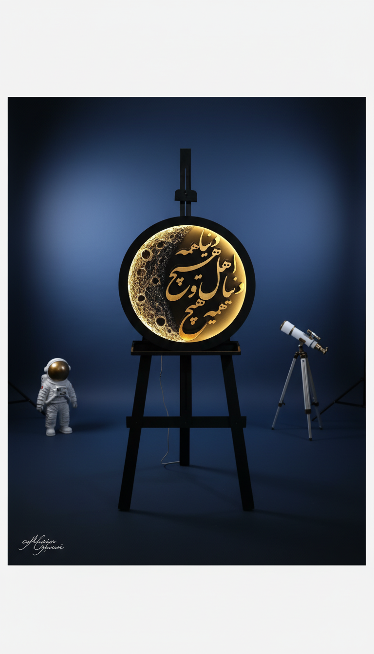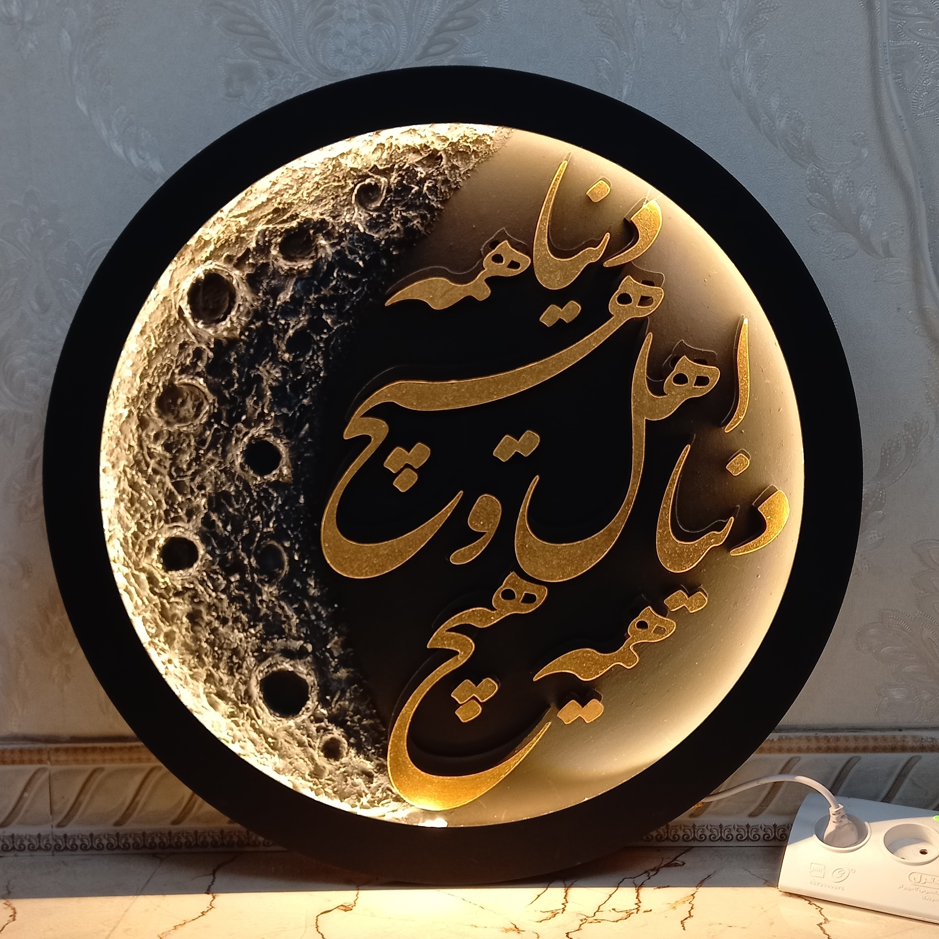 تابلو ماه و کالیگرافی قطر65 نور زرد کم رنگ