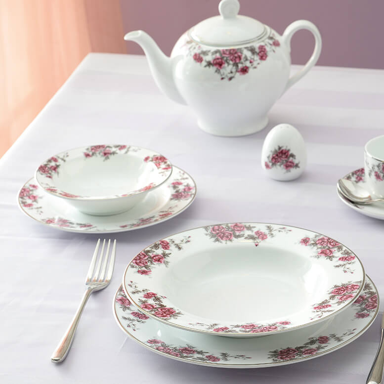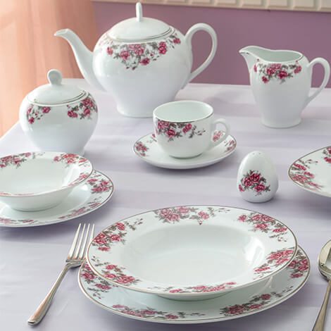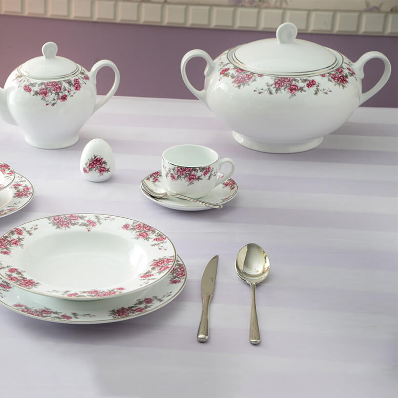 سرویس غذاخوری ایتالیا اف آران 102 پارچه چینی زرین سرویس غذاخوری ایتالیا اف آران 102 پارچه چینی زرین و یا 12 نفره شامل 102 پارچه به شرح زیر میباشد: سوپ خوری با در:یک عدد سالاد خوری بزرگ:یک عدد سالاد خوری کوچک: دوازده عدد دیس:سه عدد با قطر + سانتیمتر بشقاب غذا خوری: هجده عدد بشقاب خورش خوری: دوازده عدد بشقاب میوه خوری: هجده عدد قوری چای خوری با در: یک عدد فنجان: دوازده عدد نعلبکی: دوازده عدد قندان با در :یک عدد شکر ریز:دو عدد نمک پاش: شش عدد در باره قالب ایتالیا اف قالب یا پیکره به حجم و شکل ظاهری سرویس ها،بدون در نظر گرفتن نقش چاپ شده روی آن ها گفته میشود. ایتالیا اف یکی از قدیمی ترین، کاربردی ترین و در عین حال پرطرفدارترین قالب های طراحی شده چینی زرین است. این قالب با حفظ قواعد طراحی ارگونومیک طراحی شده است، که باعث راحتی در جمع آوری و حمل این سرویس های چینی و همچنین راحتی در شست وشو و استفاده از آن ها می شود. ایتالیا اف چینی زرین شامل گل آرایی های بسیار متنوع و متفاوتی در سال های اخیر بوده است که بیشترین تعداد محصولات چینی زرین را تشکیل داده است. همین کاربردی بودن و مناسب بودن ابعاد و کارایی ایتالیا اف باعث شده است بیشتر محصولاتی که به عنوان اقلام چینی مکمل به بازار عرضه می شوند از قالب ایتالیا اف باشند، مثل انواع پیاله. قالب ایتالیا اف به صورت سرویس های چینی 12 نفره کامل ، سرویس های 6 نفره غذاخوری ، سرویس 6 نفره چای خوری کامل ، سرویس 6 نفره چای خوری ، سرویس 6نفره قهوه خوری ، سرویس 13پارچه پیاله و سرویس 9 پارچه انارخوری تولید و به فروش میرسد. توصیه هایی برای نگهداری بهتر نظر به اینکه در طرح روی سرویس چینی منتخب شما طلا یا پلاتین به کار رفته است، رعایت نکات زیر به حفظ زیبایی و آراستگی ظاهر سرویس چینی شما برای سالیان دراز کمک می کند. ظروف چینی آراسته شده با طلا یا پلاتین به راحتی با شوینده های ملایم تمیز می شوند. برای این منظور توصیه می شود از اسفنج مخصوص استفاده شود. اگرچه ظروف طلادار یا پلاتینی چینی زرین نسبت به انواع مشابه موجود در بازار از مقاومت بالاتری در برابر شست وشو برخوردارند، بهتر است این ظروف کمتر در ماشین ظرفشویی شسته شوند، مگر ظروف تزیین شده به روش IGD . همانطور که می دانید، قرار دادن فلزات در اجاق مایکروفر می تواند به خود اجاق و احیاناً ظرف فلزی آسیب برساند. به علت خاصیت فلزی طلا یا پلاتین استفاده شده در تزیین این ظروف، توصیه می شود، از قرار دادن آنها در مایکروفر خودداری نمایید. برای این منظور می توانید از انواع ظروف چینی بدون طلا استفاده کنید. استفاده از مواد سفید کننده مانند وایتکس، برای سلامتی انسان مضر است. لیکن در صورت نیاز از محلول رقیق شده در زمان کوتاه استفاده نمایید وحتی المقدور از تماس مستقیم این مواد با طرح روی ظروف جلوگیری کنید. پیشنهاد می شود از پودر ظرفشویی مرغوب به عنوان جایگزین سفیدکننده استفاده نمایید. پایه های ظروف چینی بنا به ضرورت های فنی تولید فاقد لعاب است و اگرچه به دقت صیقل داده می شوند، به علت سختی بسیار بالای بدنه چینی می تواند روی سطح لعاب ظروف زیرین و یا میزهای شیشه ای خط و خش ایجاد نماید. به همین دلیل پیشنهاد می شود در زمان دسته کردن ظروف تخت از ساییده شدن شدید آنها روی یکدیگر جلوگیری نمایید. قرار دادن یک دستمال بین ظروف به این منظور کمک می کند. معرفی چینی زرین ایران چینی زرین ایران معتبرترین تولیدکننده ظروف چینی در خاورمیانه و یکی از مدرن ترین کارخانجات این صنعت در جهان است. به همین سبب قادر بوده است محصولات خود را به بیش از 20 کشور عمدتا اروپایی نظیر آلمان، اسپانیا، ایتالیا، فرانسه، انگلستان، سوئد، هلند، ترکیه، روسیه، کانادا، عربستان، امارات متحده عربی و هندوستان صادر نماید. صنایع چینی زرین ایران به عنوان یکی از اعضای پیشرو انجمن تحقیق و توسعه ایران همواره توجه ویژه ای را به این بخش معطوف داشته است. این شرکت بارها به عنوان صــادرکننده و تولیدکننده نمونه کشور و ه