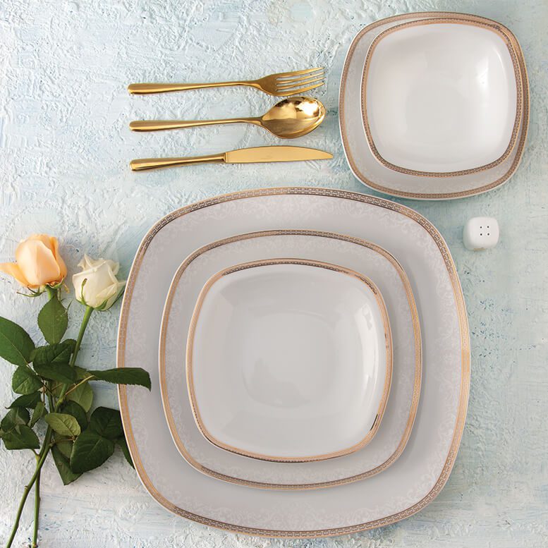 سرویس غذاخوری کواترو ریوا طلایی 27 پارچه چینی زرین مبلمونسرا مدل 289053
