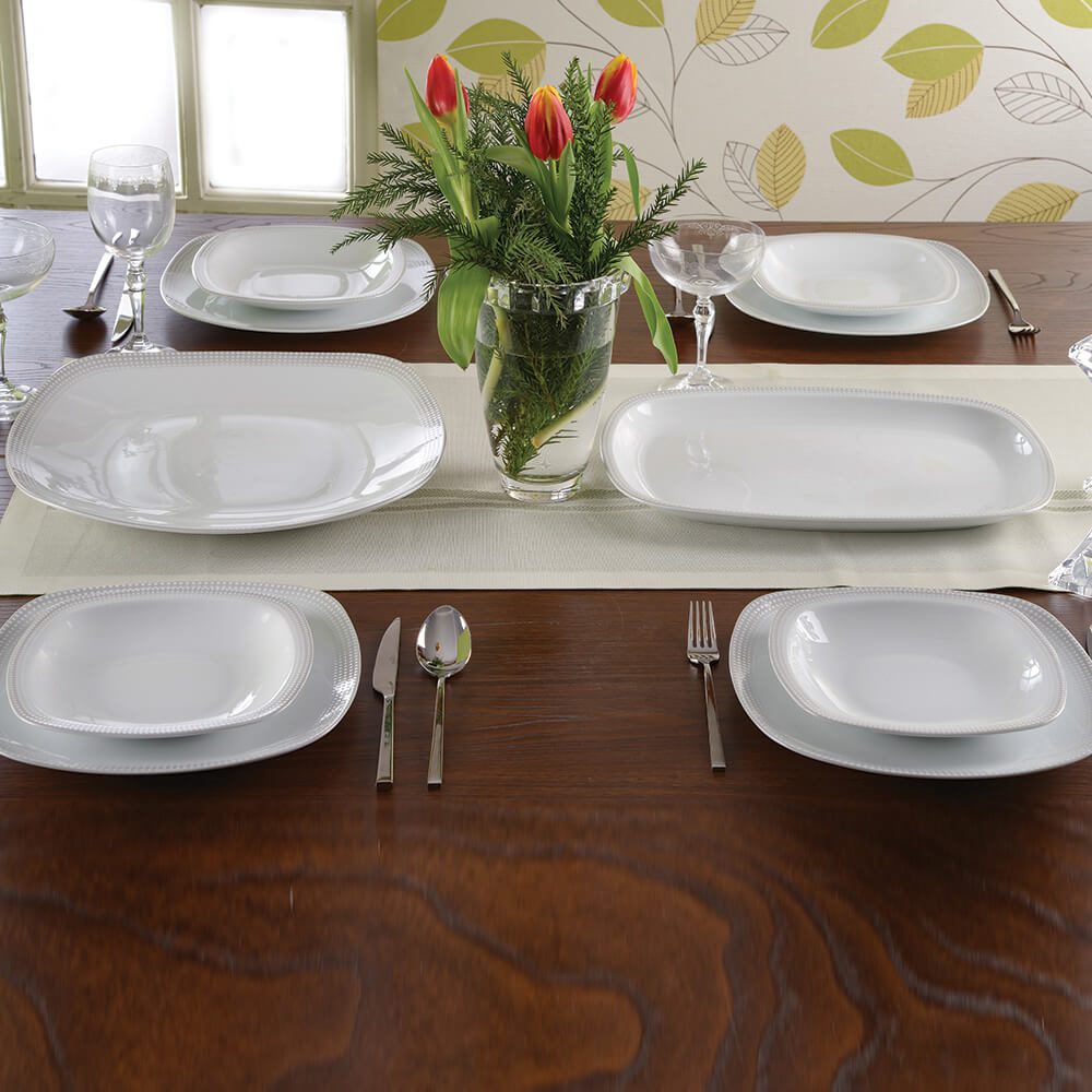 سرویس غذاخوری کواترو مون بلان طوسی 27 پارچه چینی زرین مبلمونسرا مدل 291260
