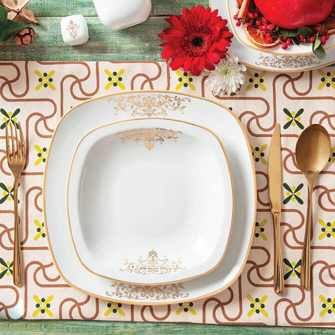 سرویس غذاخوری کواترو مونت کارلو طلایی 98 پارچه چینی زرین سرویس غذاخوری مونت کارلو طلایی 98 پارچه چینی زرین یا 12 نفره شامل 98 پارچه به شرح زیر میباشد: سوپ خوری با در: یک عدد با گنجایش 3000 سی سی سالاد خوری بزرگ:یک عدد با قطر 25سانتیمتر سالاد خوری کوچک: دوازده عدد با قطر 14سانتیمتر دیس:سه عدد با قطر + سانتیمتر بشقاب غذا خوری: هجده عدد با قطر 27 سانتیمتر بشقاب خورش خوری: دوازده عدد با قطر 22سانتیمتر بشقاب میوه خوری: هجده عدد با قطر 19سانتیمتر قوری چای خوری با در: یک عدد با گنجایش 1100 سی سی فنجان: دوازده عدد با قطر 8 سانتیمتر نعلبکی: دوازده عدد با قطر 14 سانتیمتر قندان با در :یک عدد با گنجایش 330 سی سی شکر ریز:دو عدد با گنجایش 300 سی سی نمک پاش: شش عدد با گنجایش 55 سی سی درباره پیکرهی کوادرو قالب کواترو برند چینی زرین احساسی از سبک طراحی های دوران مدرن را می دهد ، می توان گفت استفاده از فرم مربع و حجم مکعب قالب کواترو این احساس را القا می کند. سادگی در فرم و زوایای قائم باعث بالا رفتن کارایی و در عین حال زیبایی این قالب شده است. سری کواترو چینی زرین بعد از سری ایتالیا اف بیشترین تعداد محصولات را در بر می گیرد و از طرفداران بسیاری برخوردار است. سری کواترو چینی زرین به صورت سرویس های چینی 12 نفره کامل ، سرویس های 6 نفره غذاخوری ، سرویس 6 نفره چای خوری کامل و سرویس 6 نفره چای خوری .تولید و عرضه می شوند. درباره نگاره مونت کارلو چینی طرح مونت کارلو یکی از پرفروش ترین و پرطرفدارترین طرح های چینی در سال های اخیر است که بر روی قالب کواترو چینی زرین تولید می شود. این طرح زیبا در دو مدل مونت کارلو طلایی و مونت کارلو پلاتینی تولید می شود، که هر یک طرفداران خاص خود را دارند. طرح مونت کارلو شباهت های زیادی به یکی از سرویس های پرطرفدار سالهای قبل سری کواترو با نام موناکو دارد و در واقع می توان مونت کارلو را جانشینی شایسته برای طرح موناکو دانست، زیرا پس از توقف تولید موناکو به بازار آمد و با میزان فروش بالای خود سهم بسزایی در فروش محصولات چینی زرین ایفا کرد. توصیه هایی برای نگهداری بهتر نظر به اینکه در طرح روی سرویس چینی منتخب شما طلا یا پلاتین به کار رفته است، رعایت نکات زیر به حفظ زیبایی و آراستگی ظاهر سرویس چینی شما برای سالیان دراز کمک می کند. استفاده از مواد سفید کننده مانند وایتکس، برای سلامتی انسان مضر است. لیکن در صورت نیاز از محلول رقیق شده در زمان کوتاه استفاده نمایید وحتی المقدور از تماس مستقیم این مواد با طرح روی ظروف جلوگیری کنید. پیشنهاد می شود از پودر ظرفشویی مرغوب به عنوان جایگزین سفیدکننده استفاده نمایید. پایه های ظروف چینی بنا به ضرورت های فنی تولید فاقد لعاب است و اگرچه به دقت صیقل داده می شوند، به علت سختی بسیار بالای بدنه چینی می تواند روی سطح لعاب ظروف زیرین و یا میزهای شیشه ای خط و خش ایجاد نماید. به همین دلیل پیشنهاد می شود در زمان دسته کردن ظروف تخت از ساییده شدن شدید آنها روی یکدیگر جلوگیری نمایید. قرار دادن یک دستمال بین ظروف به این منظور کمک می کند. معرفی چینی زرین ایران چینی زرین ایران معتبرترین تولیدکننده ظروف چینی در خاورمیانه و یکی از مدرن ترین کارخانجات این صنعت در جهان است. به همین سبب قادر بوده است محصولات خود را به بیش از 20 کشور عمدتا اروپایی نظیر آلمان، اسپانیا، ایتالیا، فرانسه، انگلستان، سوئد، هلند، ترکیه، روسیه، کانادا، عربستان، امارات متحده عربی و هندوستان صادر نماید. صنایع چینی زرین ایران به عنوان یکی از اعضای پیشرو انجمن تحقیق و توسعه ایران همواره توجه ویژه ای را به این بخش معطوف داشته است. این شرکت بارها به عنوان صــادرکننده و تولیدکننده نمونه کشور و همچنین واحد نمونه بیمه و صنعت سبز ملی برگزیده شده است و گواهینامه های رعایت حقوق مصرف کننده، صادرات به اروپا CE، پروانه بهداشت، استاندارد ISO14001 ، ISO9001 و OHSAS18001 را در کارنامه خود دارد.