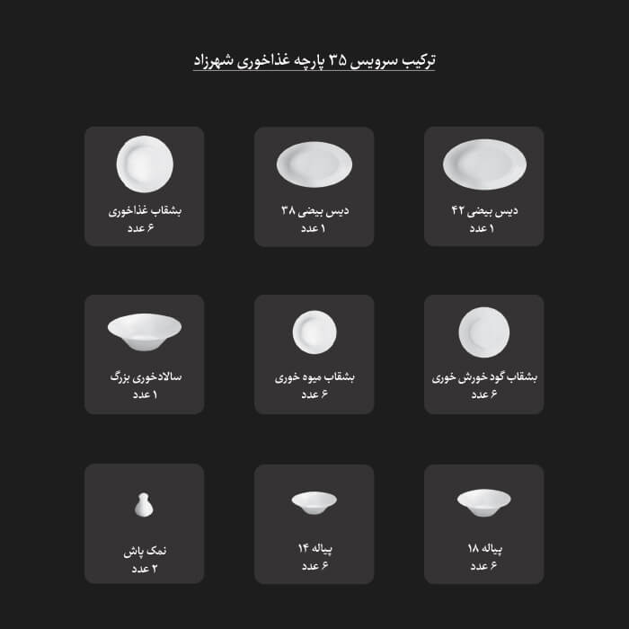 سرویس غذاخوری شهرزاد سمرقند 35 پارچه چینی زرین مبلمونسرا مدل 290403