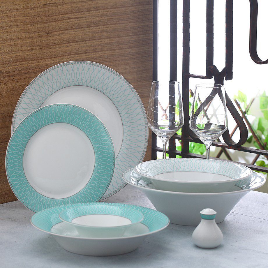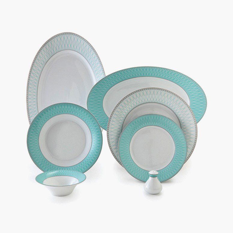 سرویس غذاخوری شهرزاد ژانتی فیروزه ای 108 پارچه چینی زرین مبلمونسرا مدل 289734
