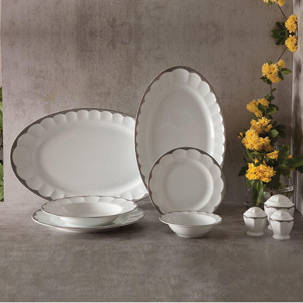 سرویس غذاخوری نئوکلاسیک ایساتیس پلاتینی 29 پارچه چینی زرین مبلمونسرا مدل 288465