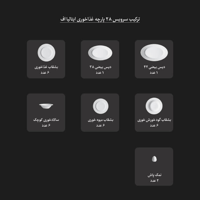 سرویس غذاخوری ایتالیا اف اپرا 28 پارچه چینی زرین مبلمونسرا مدل 290383