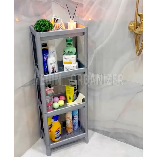 شلف حمام چندکاره با طراحی مستطیلی و مثلثی، قابل تنظیم در تعداد طبقات، مقاوم در برابر رطوبت و مناسب برای نظمدهی به حمام، آشپزخانه و سایر فضاها. ساختهشده از پلیپروپیلن با کیفیت، قابل شستشو، مقاوم و شیک