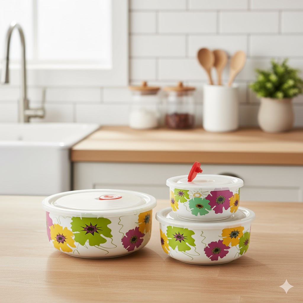 ظروف غذا فریزری 3 سایز سرامیکی گرد گلدار یونیک کد 2842 مبلمونسرا مدل 294654
